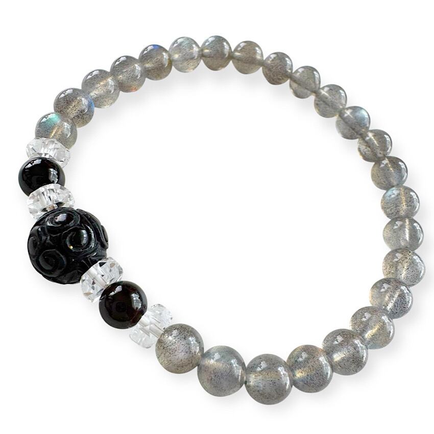 ## 【神秘の輝き】お守り天然石ラブラドライト6mm&モリオン回紋珠、モリオン6mm 天然石ブレスレット パワーストーン