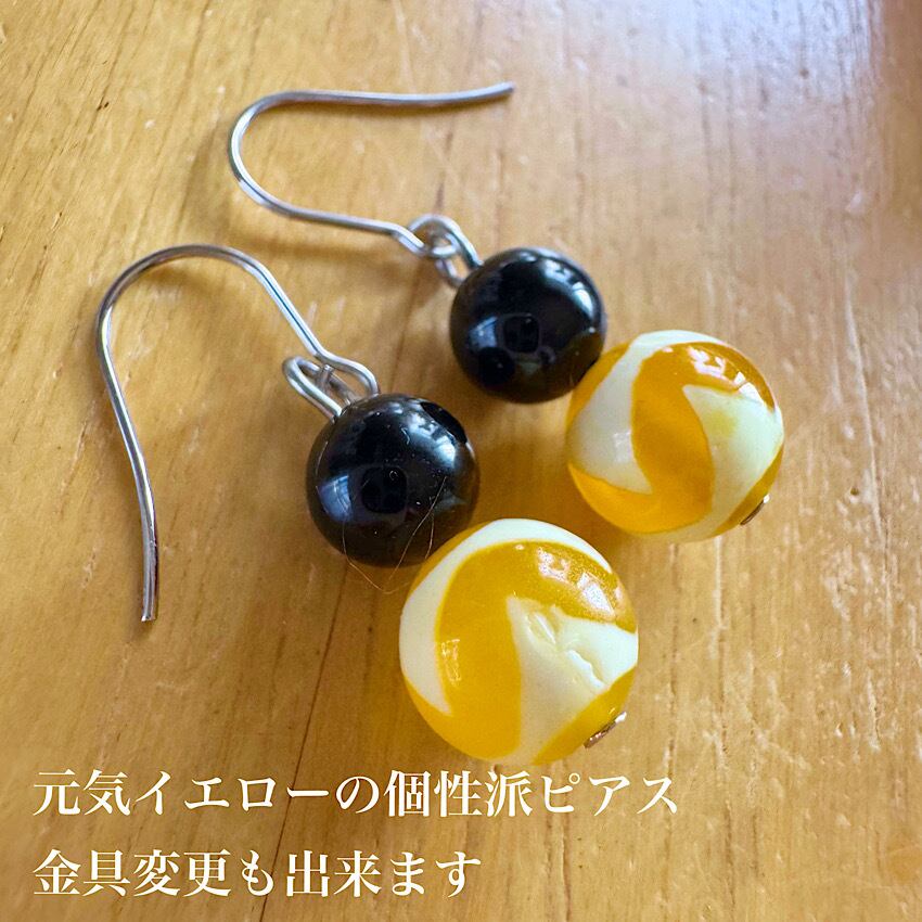 【特別な魅力】イエロー虎牙天珠10mm&モリオン6mm ステンレス製金属アレルギー対応イヤリング ノンホールピアス変更無料