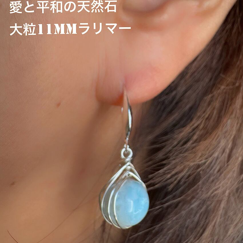 【愛と平和の守り】ラリマー11mm ワイヤーアートピアス シルバー925デザインフック イヤリング ノンホールピアス変更無料