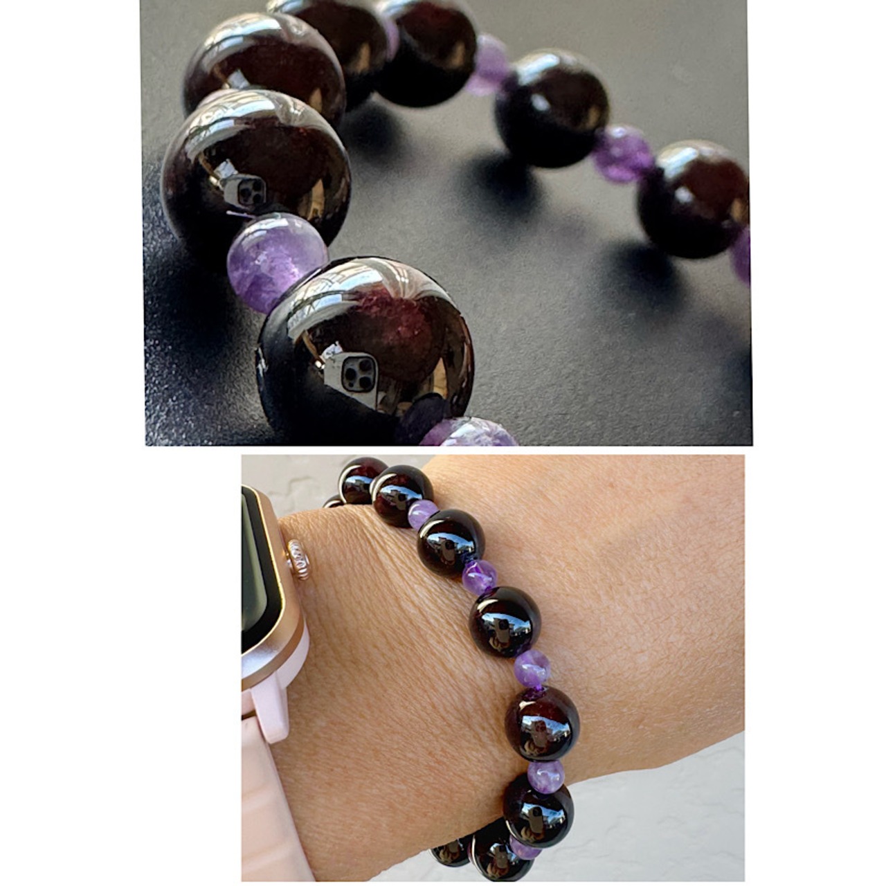 【力強いエネルギー】ガーネット10mm&ケープアメジスト4mm 天然石ブレスレット パワーストーンブレスレット 内径16cm