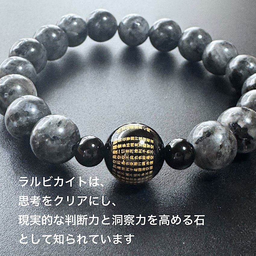 【力強い守りを秘めた】ラルビカイト10mm&オニキス般若心経12mm 天然石ブレスレット メンズアクセサリー パワーストーンブレスレット