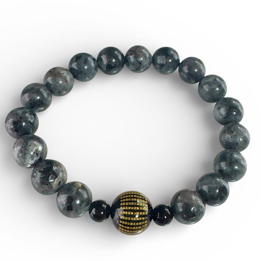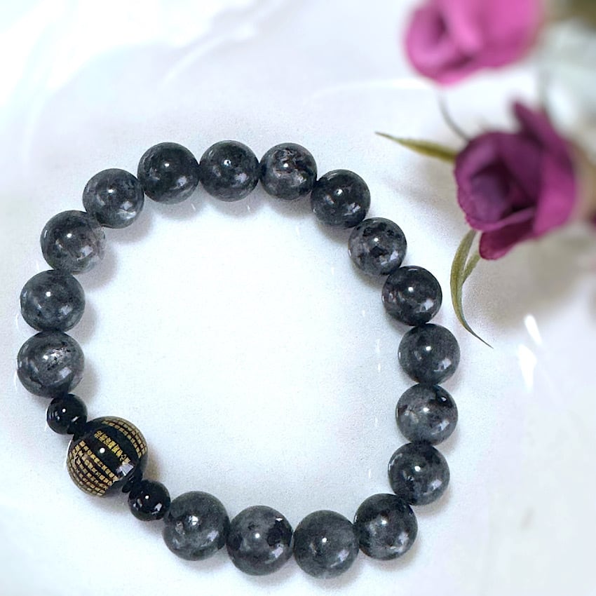 ラルビカイトは「変化」と「再生」を象徴し、持つ人に新しい視点とバランスを提供するとされています。オニキスは「強さ」と「ブレない意志」を象徴し、周囲からの影響を和らげ、内面的な平穏を保つサポートをします。特に般若心経が刻まれたオニキスは、精神的な強さと深い知恵をもたらします。