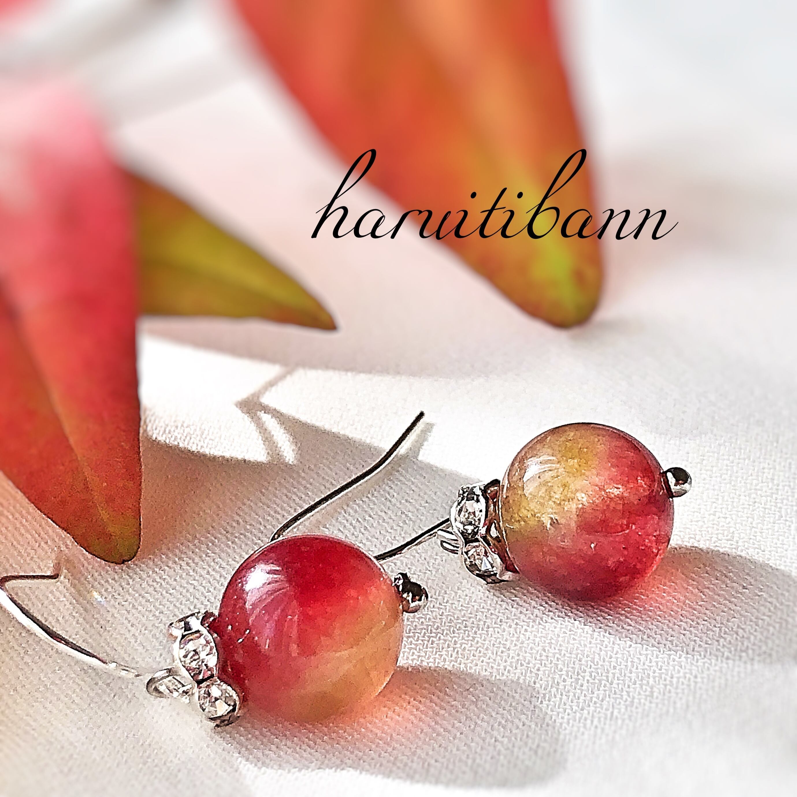 実りの秋、果物のような天然石の一粒ピアスです