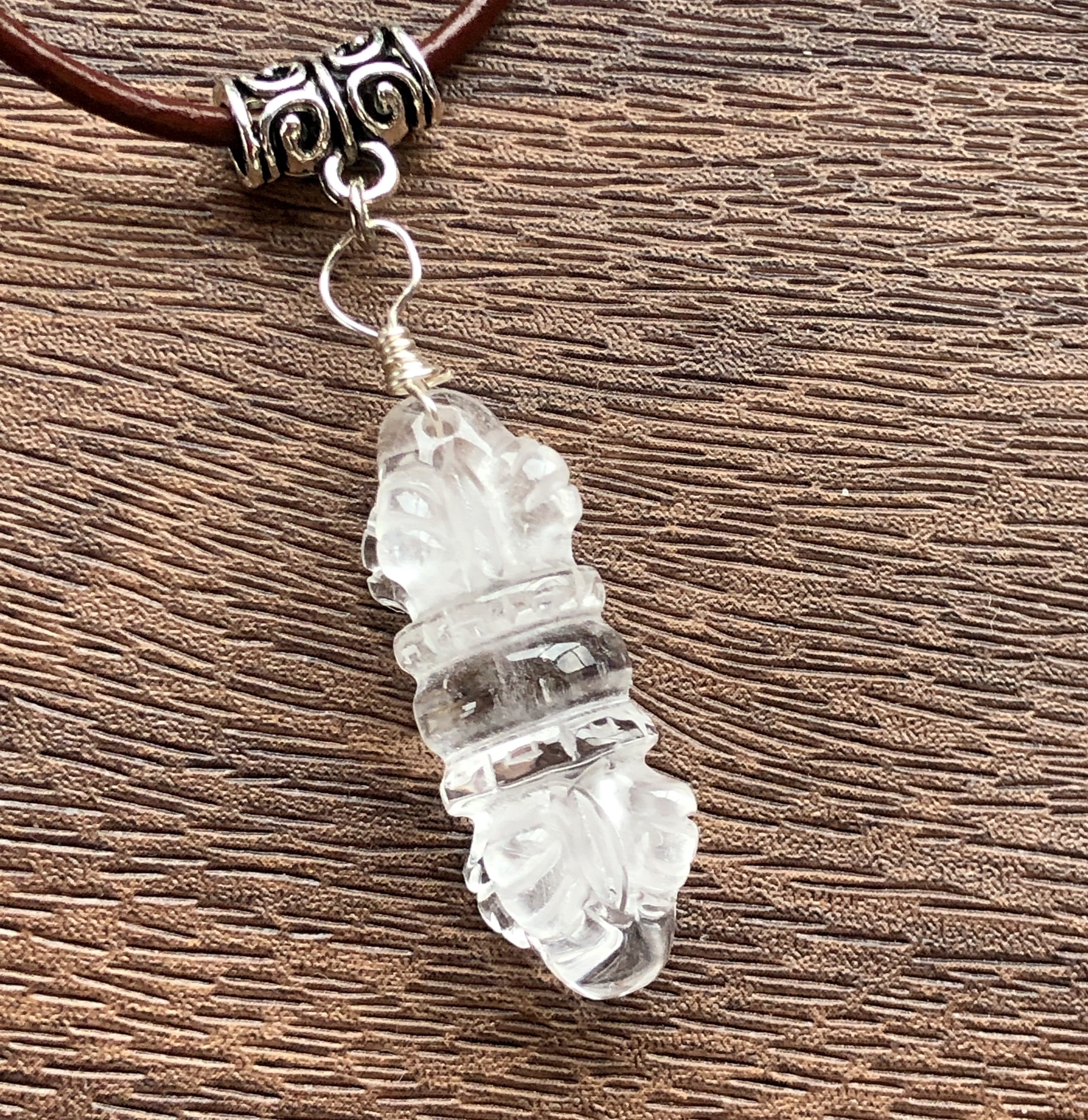 密教の儀式の際に用いられる法具ですが、現代では、特に水晶の金剛杵は煩悩除け・邪気除けのお守りとして、また気功・瞑想の道具としても使用されています。