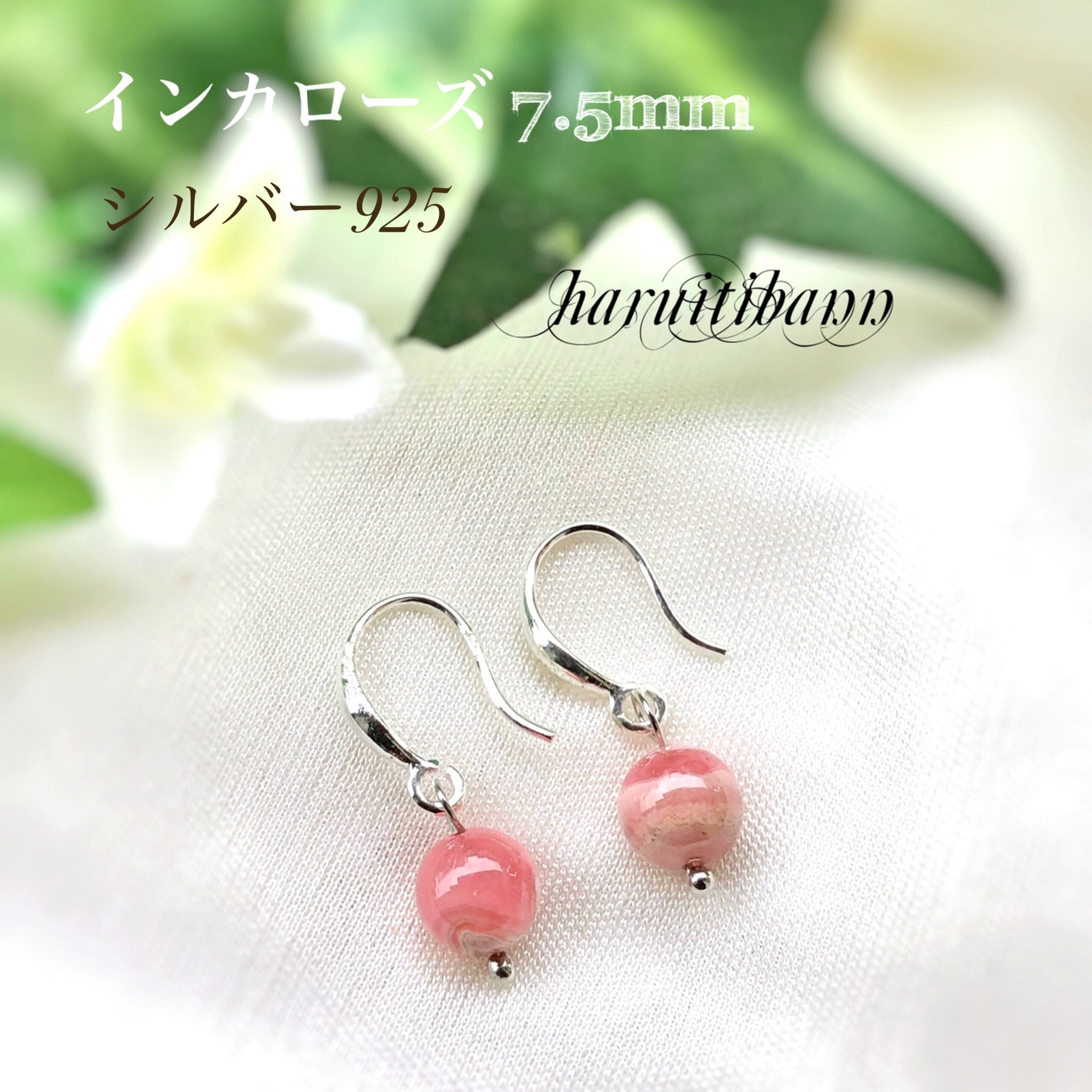 天然石インカローズ 7.5mmを使ってシンプルに1粒ピアスを作りました