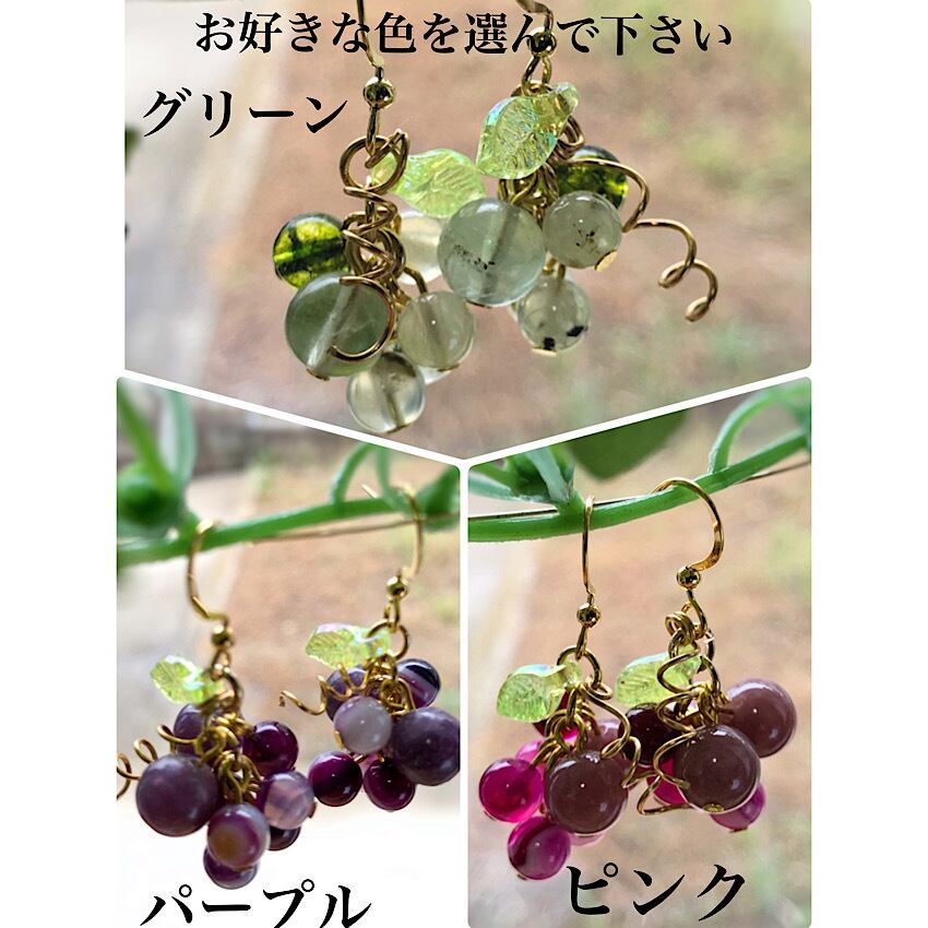 天然石を使い、たわわに実った葡萄ピアスを作りました