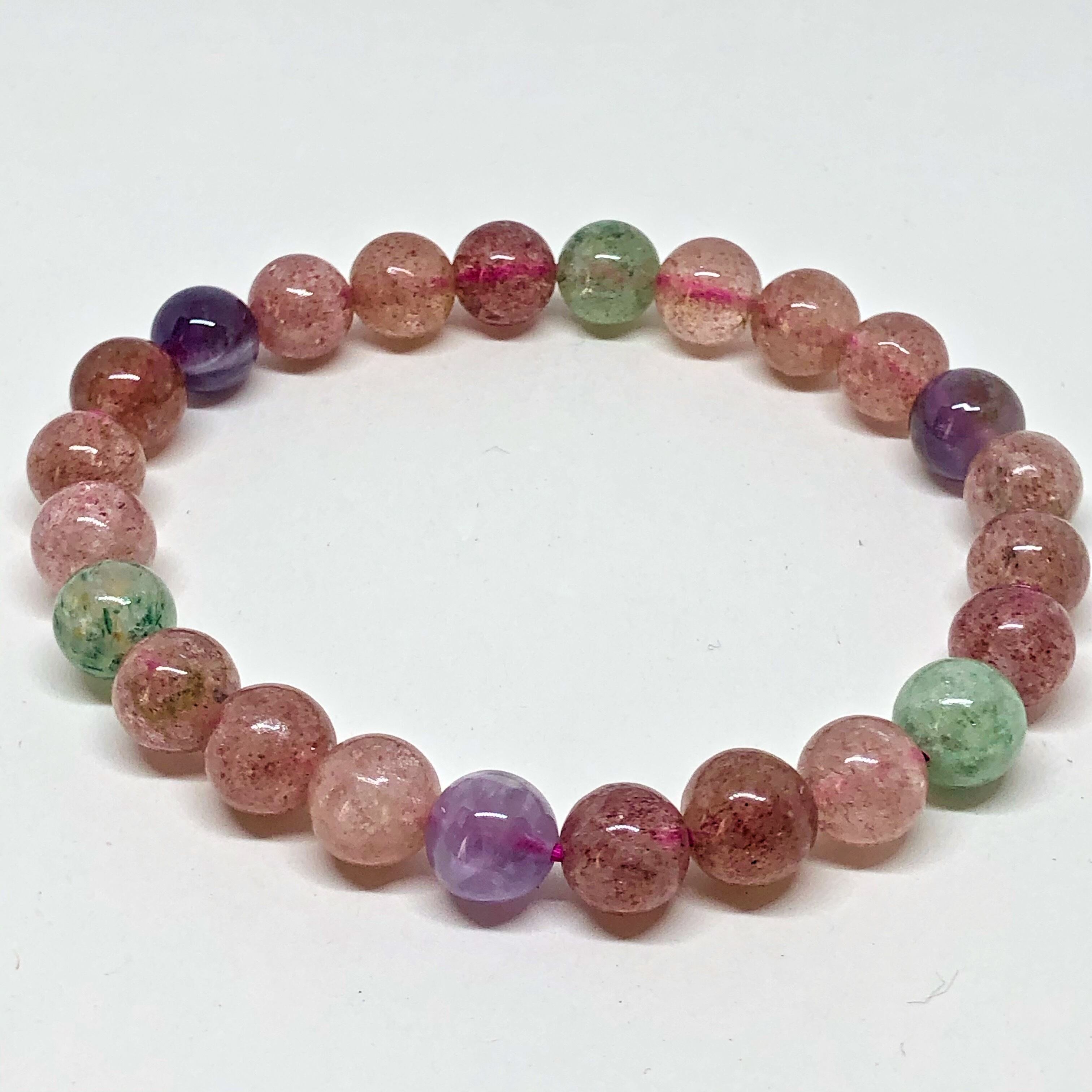ミックスストロベリークォーツ&アメジスト 天然石ブレスレット パワーストーンブレスレット