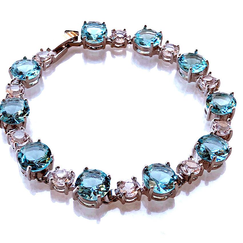 まるで上質なブルートパーズのようなお色のキュービックジルコニア、とても美しく輝きます