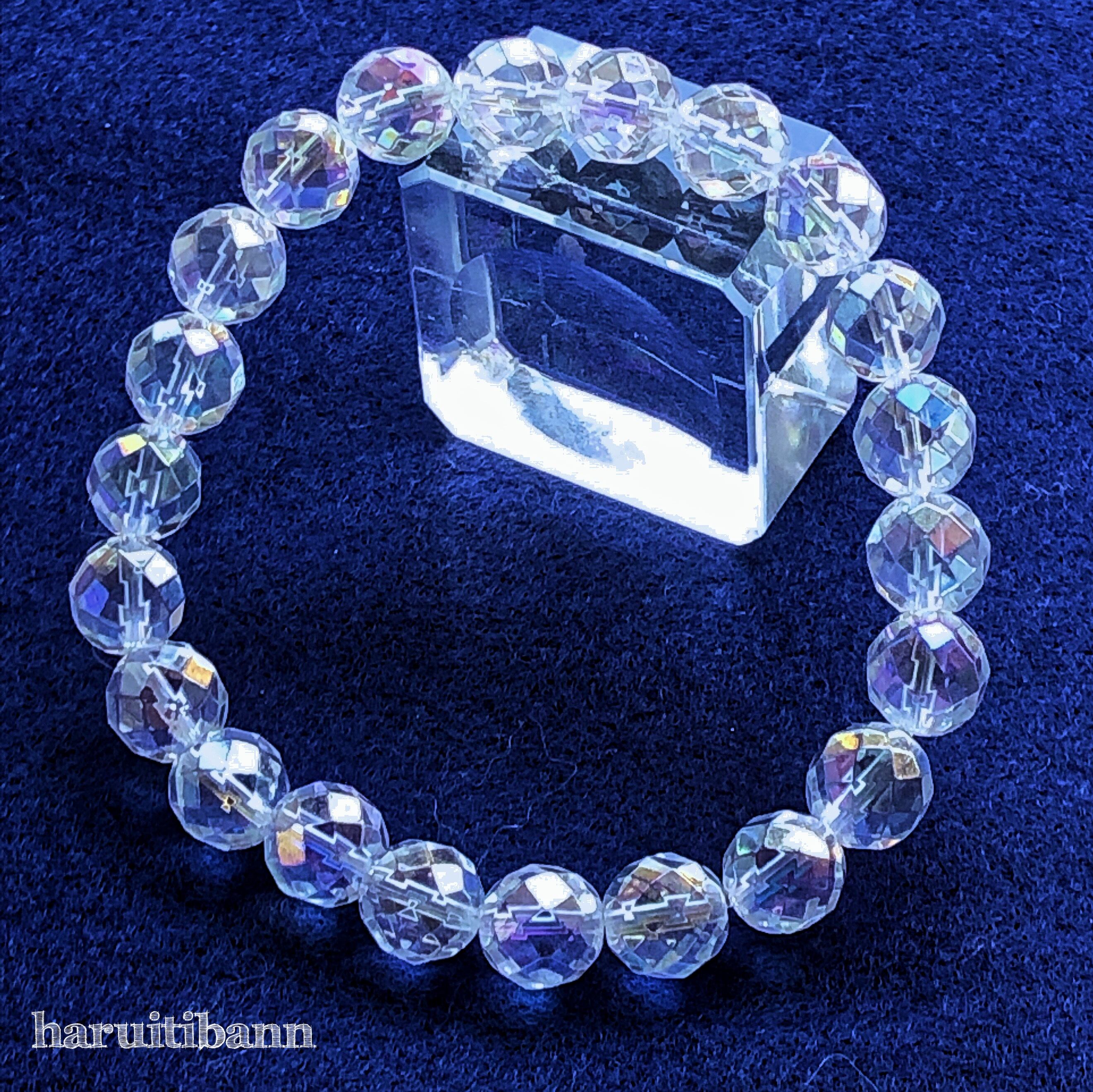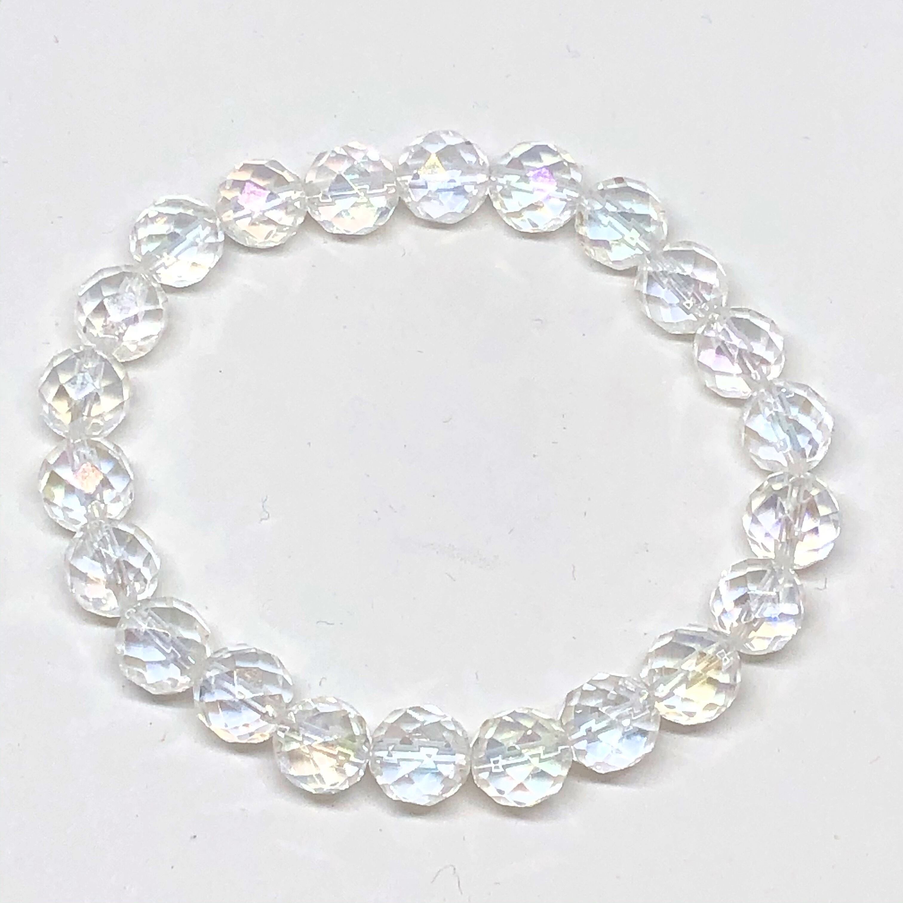 レインボーオーラ水晶 キラキラカット 8mm 天然石ブレスレット パワーストーンブレスレット
