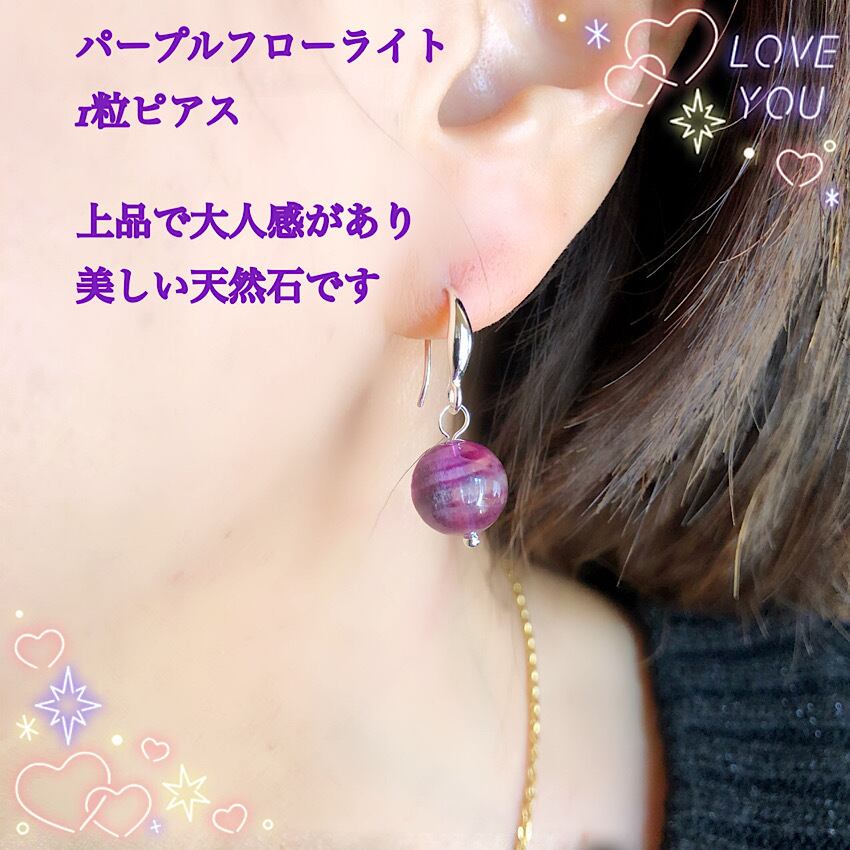 10mmのパープルフローライトを、大人感溢れる1粒ピアスにしました