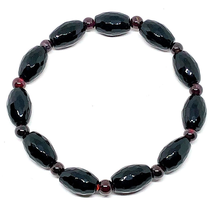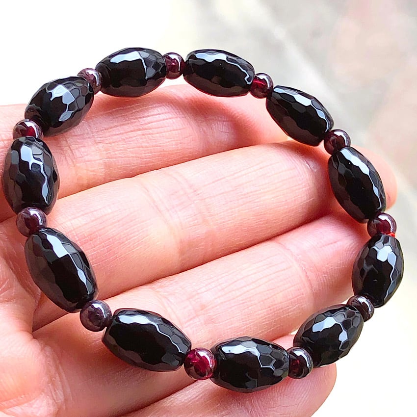 お洒落なオニキスとガーネットのデザインブレスレットです