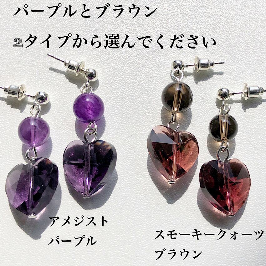 天然石は、パープルにはアメジスト、ブラウンにはスモーキークォーツを使いました