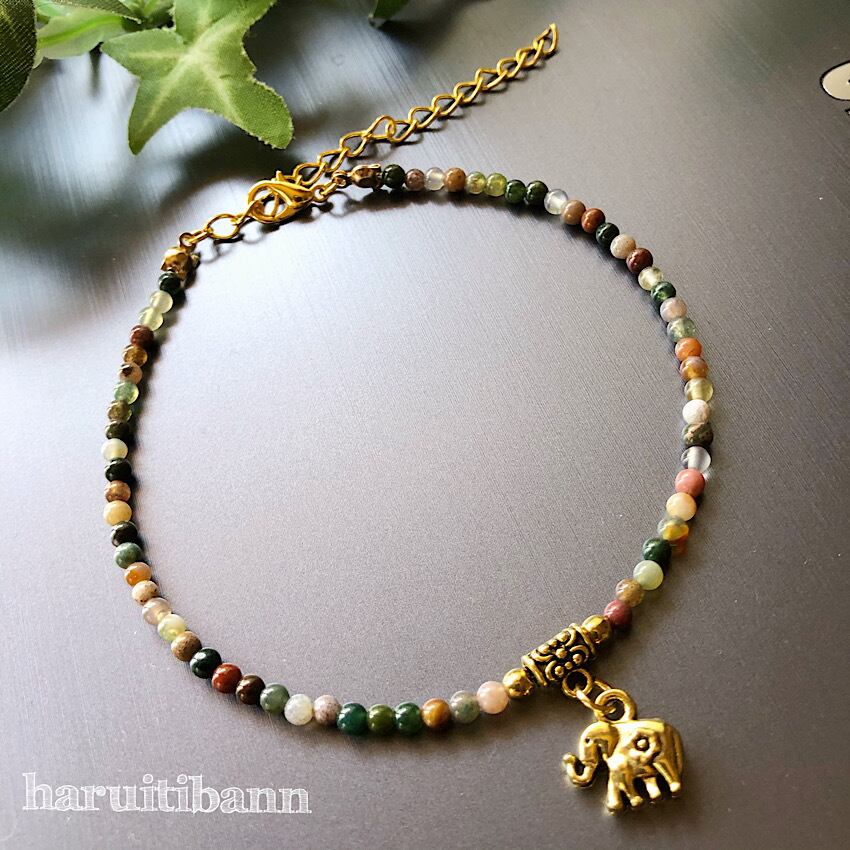 アジアンテイストの天然石に、アジアンテイストの金古美の象を付けました。