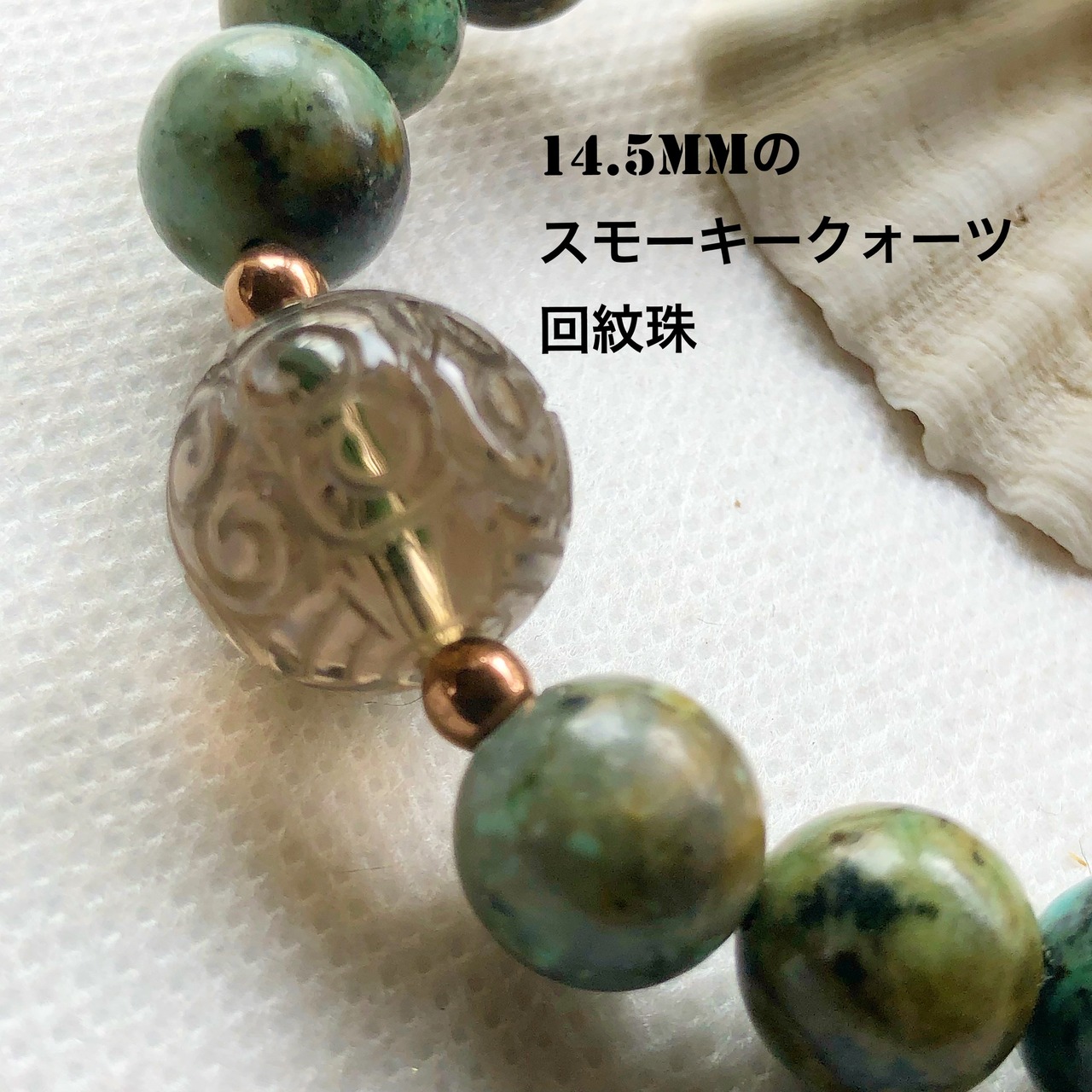 アフリカンターコイズ&スモーキークォーツ回紋珠 デザインブレスレット パワーストーンブレスレット