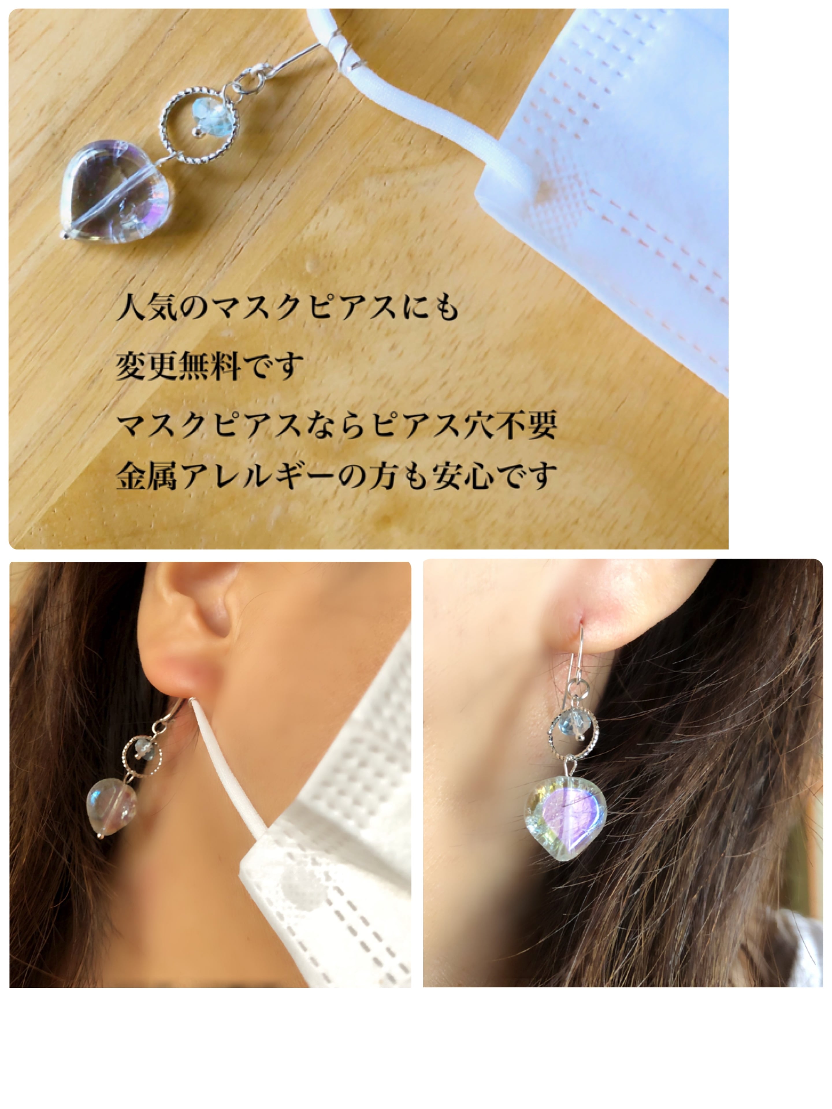 ミステリアスハート水晶×キラキラブルートパーズ ゆらゆら揺れる ニッケルフリーピアス イヤリング マスクピアス変更無料