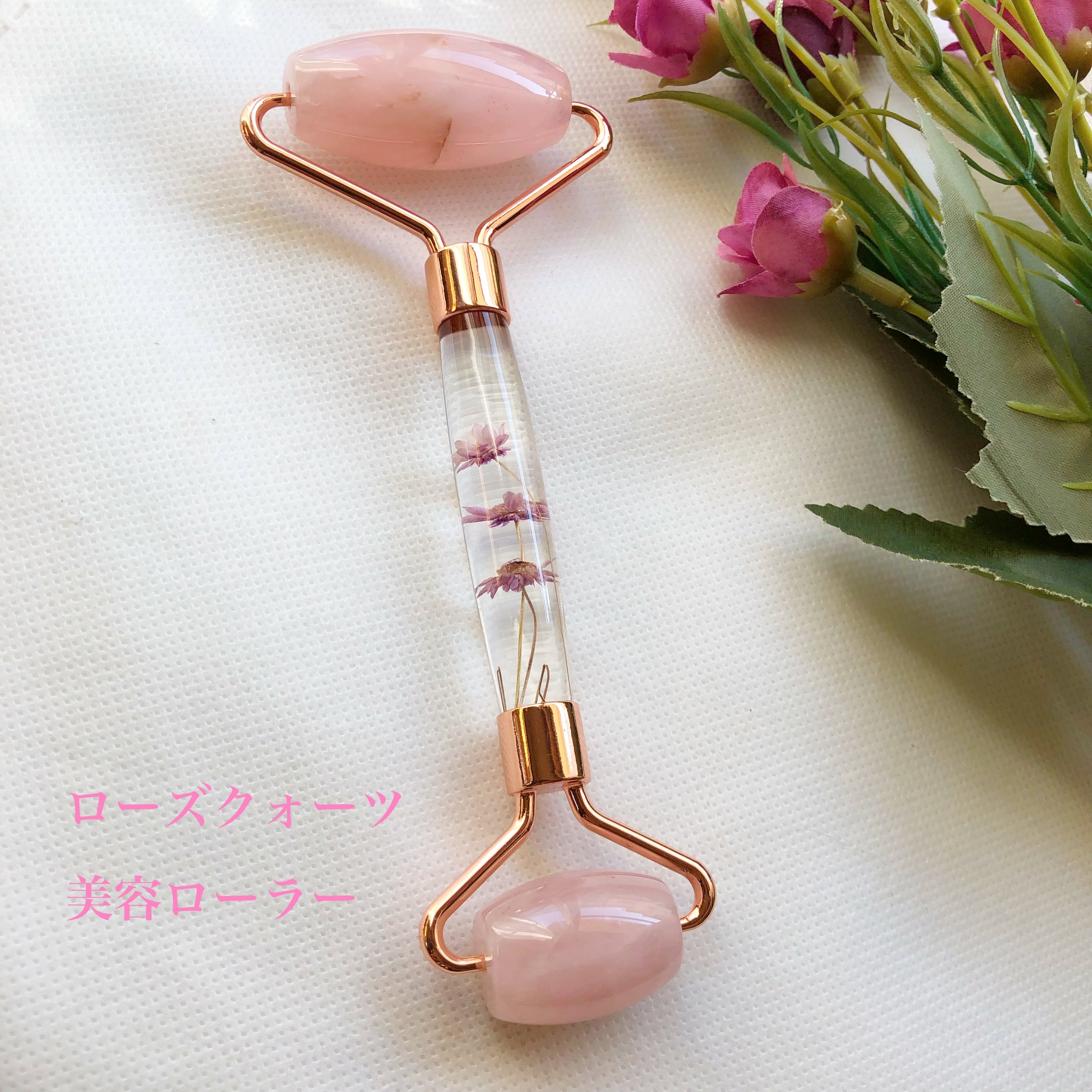 ローズクォーツを使用したフェイシャルマッサージローラー。