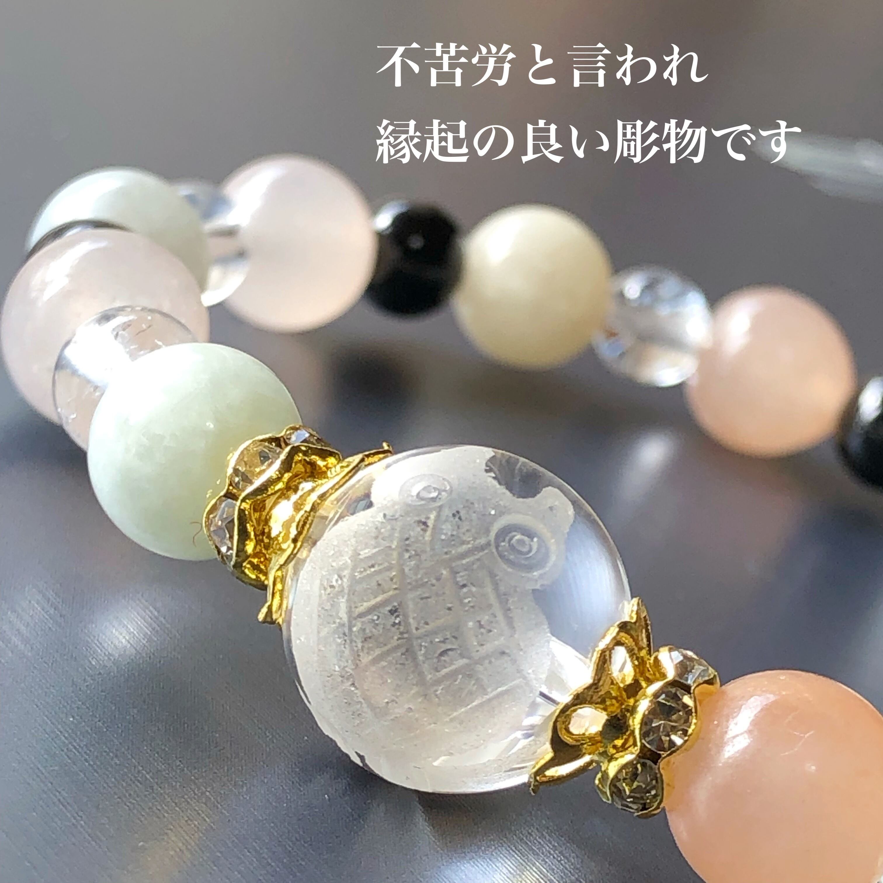 【健康第一】フクロウ(不苦労)彫×翡翠×ブラックトルマリン×ピンクアベンチュリン×水晶 天然石ブレスレット パワーストーンブレスレット