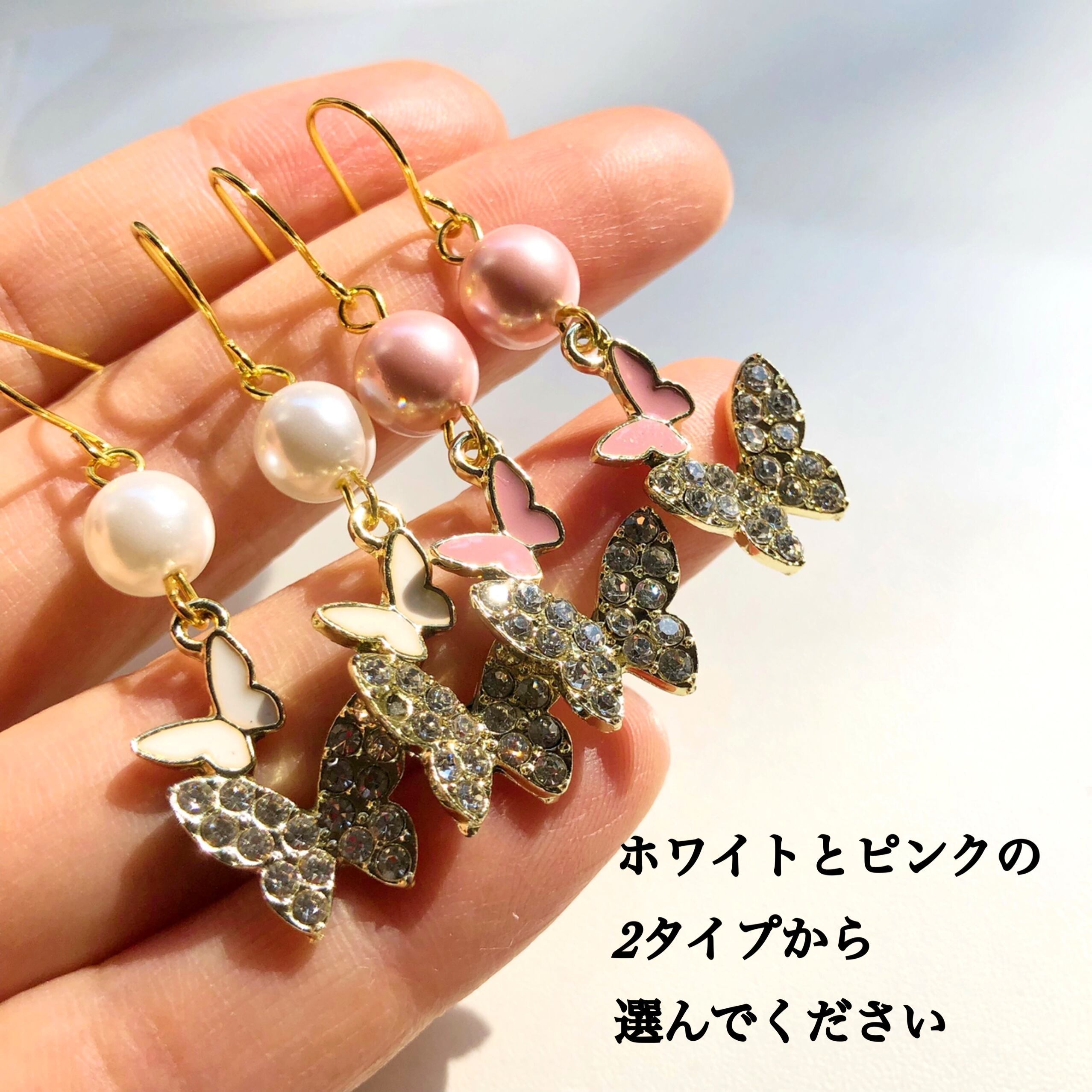 清楚なパールとゴールドのキラキラ蝶々が、とてもキュートなピアスです