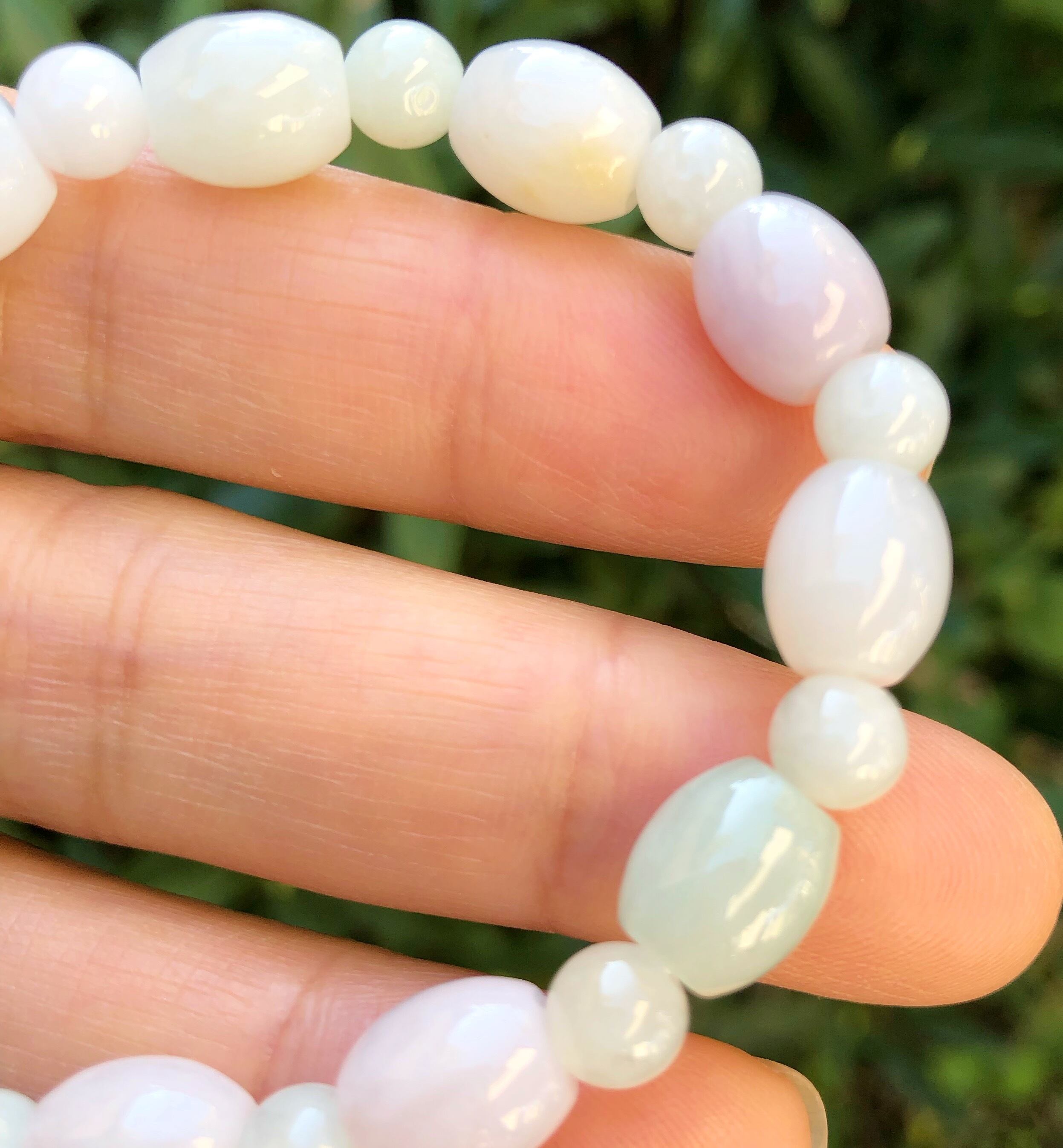 ミャンマー産翡翠のナツメカット10mm×8mmと丸玉6mmの組み合わせのデザインブレスレットです