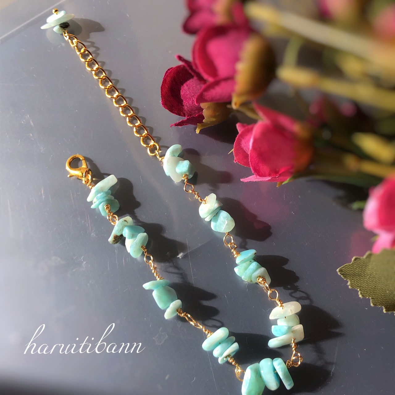 愛と平和の天然石、世界三大ヒーリングストーンラリマーのさざれブレスレットです