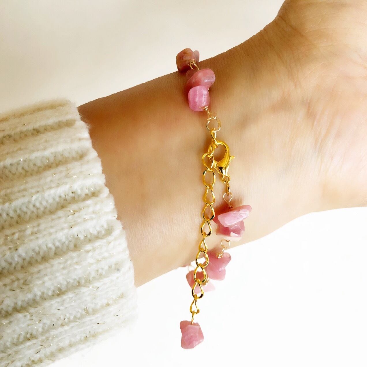 手首が華やぐピンクの石は、年代問わず女性の好きなストーンですよね
