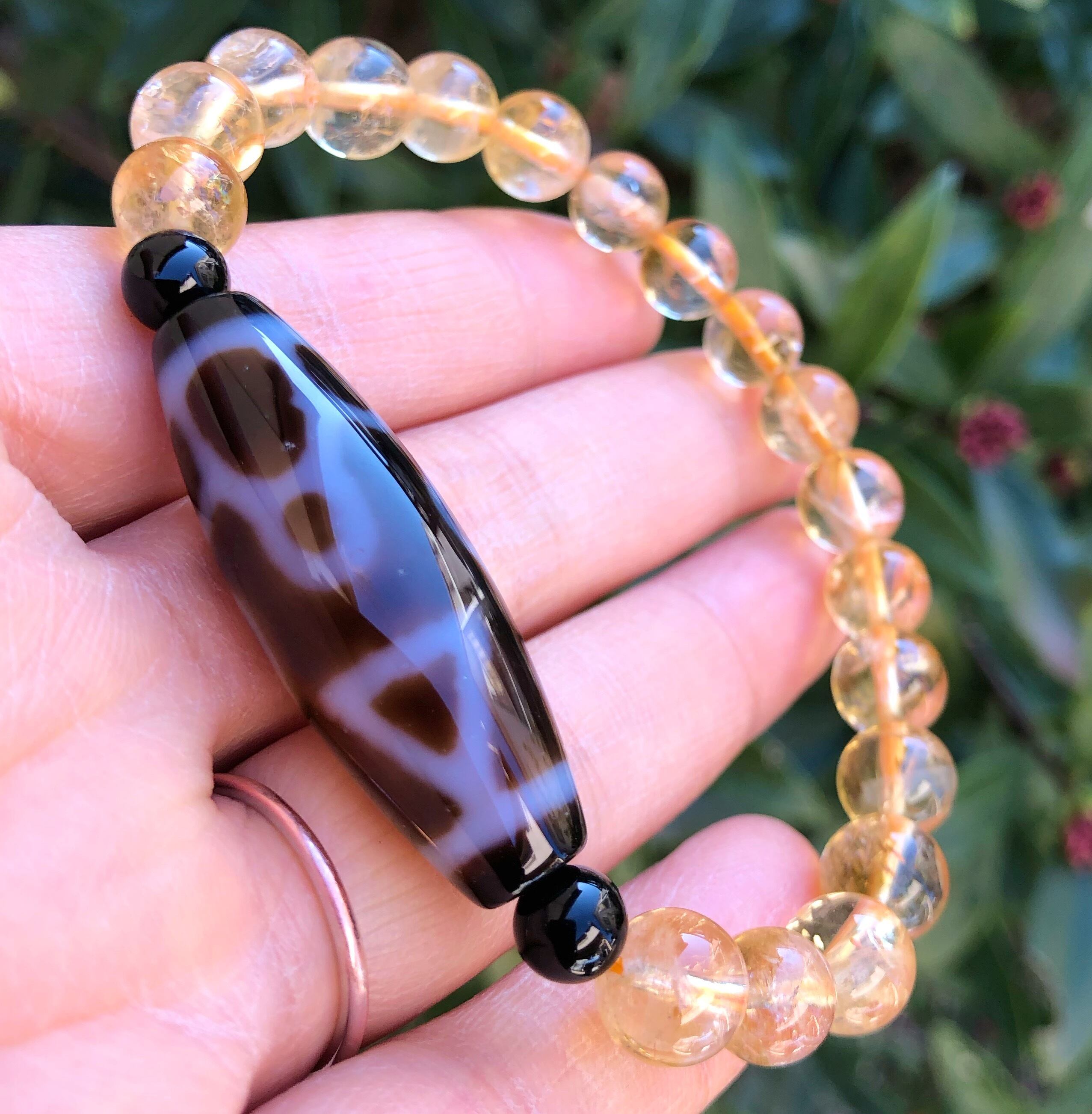 双喜佛天珠×シトリン8mm 商売繁盛、仕事運 成功をもたらす 天然石ブレスレット パワーストーンブレスレット