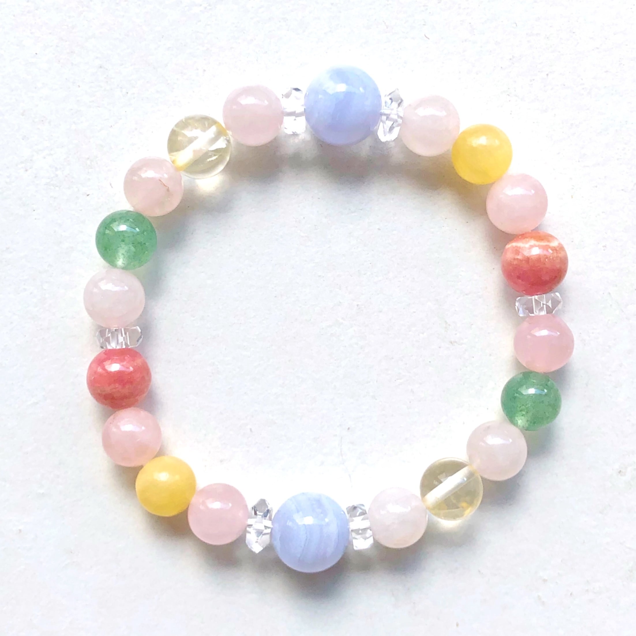 華やかな、色々な幸を集めたカラフルな天然石ブレスレットです