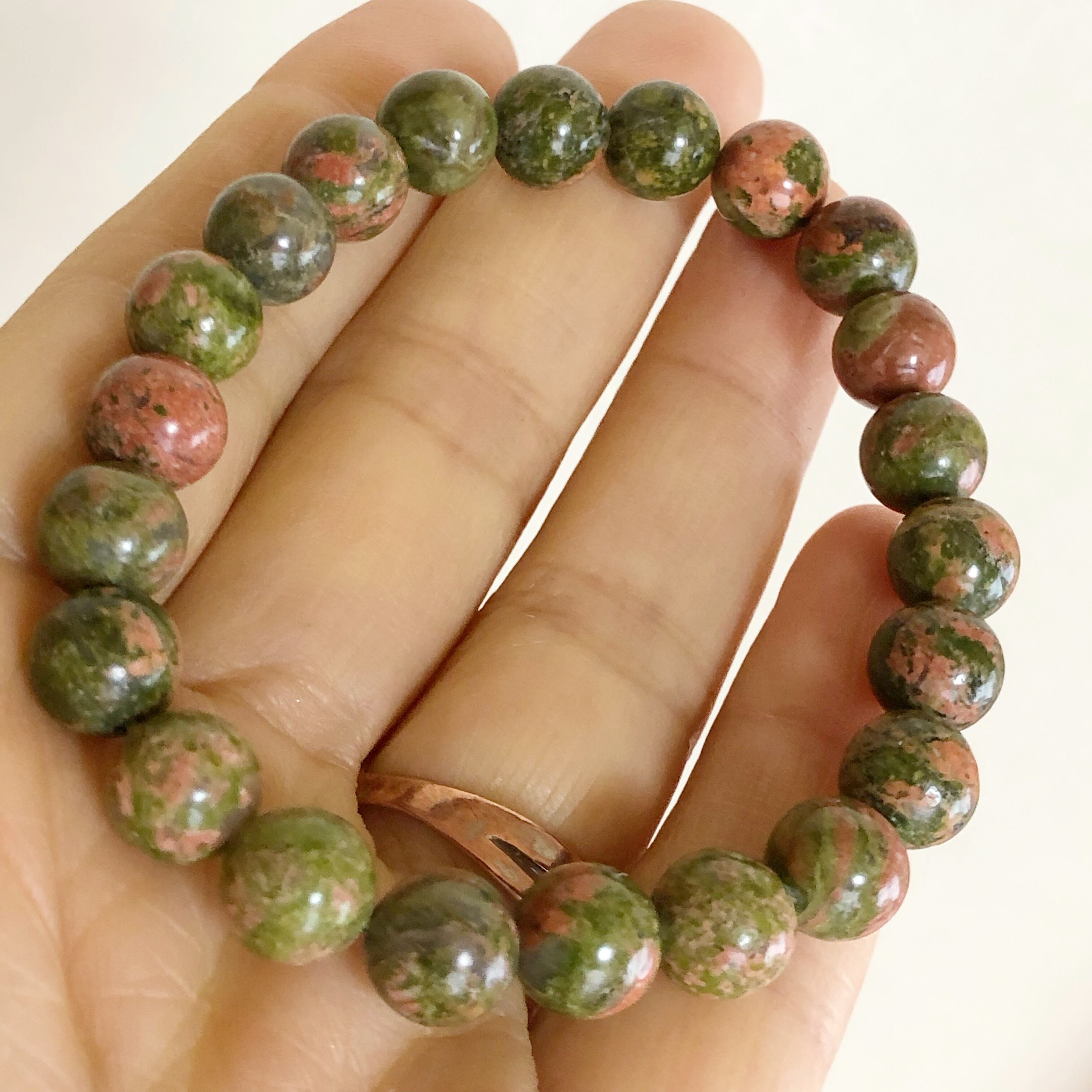 ユナカイトは、「安定」の石と言われ、ネガティブな感情や乱れがちな精神状態をリラックスさせてくれ、心身のバランスを安定した状態に保つ助けになる石です。 余分なエネルギーや力の滞りなどを抜き取り、気持ちを前向きにし、自然体でいられるように促してくれます。