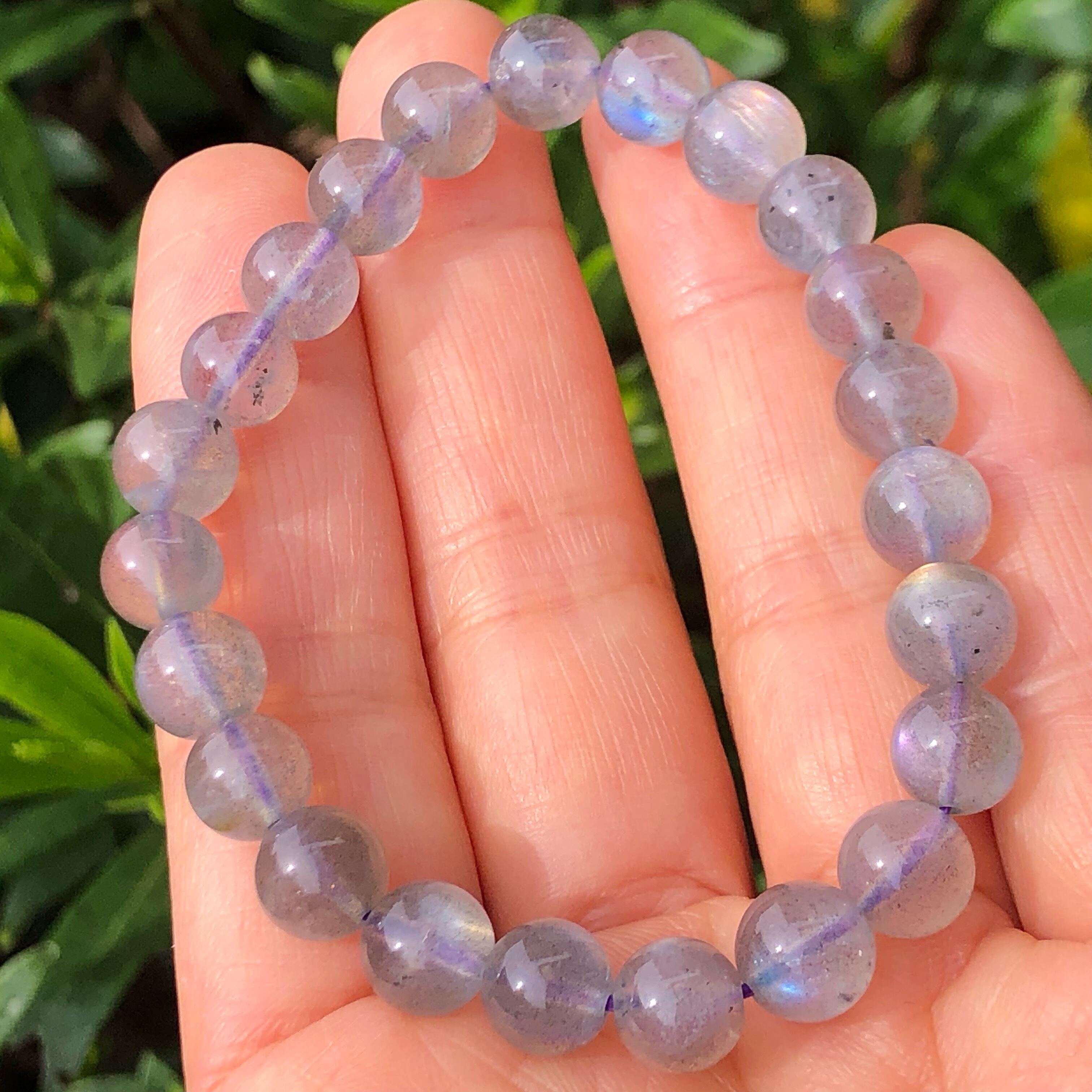 【1点もの】ピンクシラー、パープルシラー入り 美しいラブラドライト 8mm 天然石ブレスレット パワーストーンブレスレット