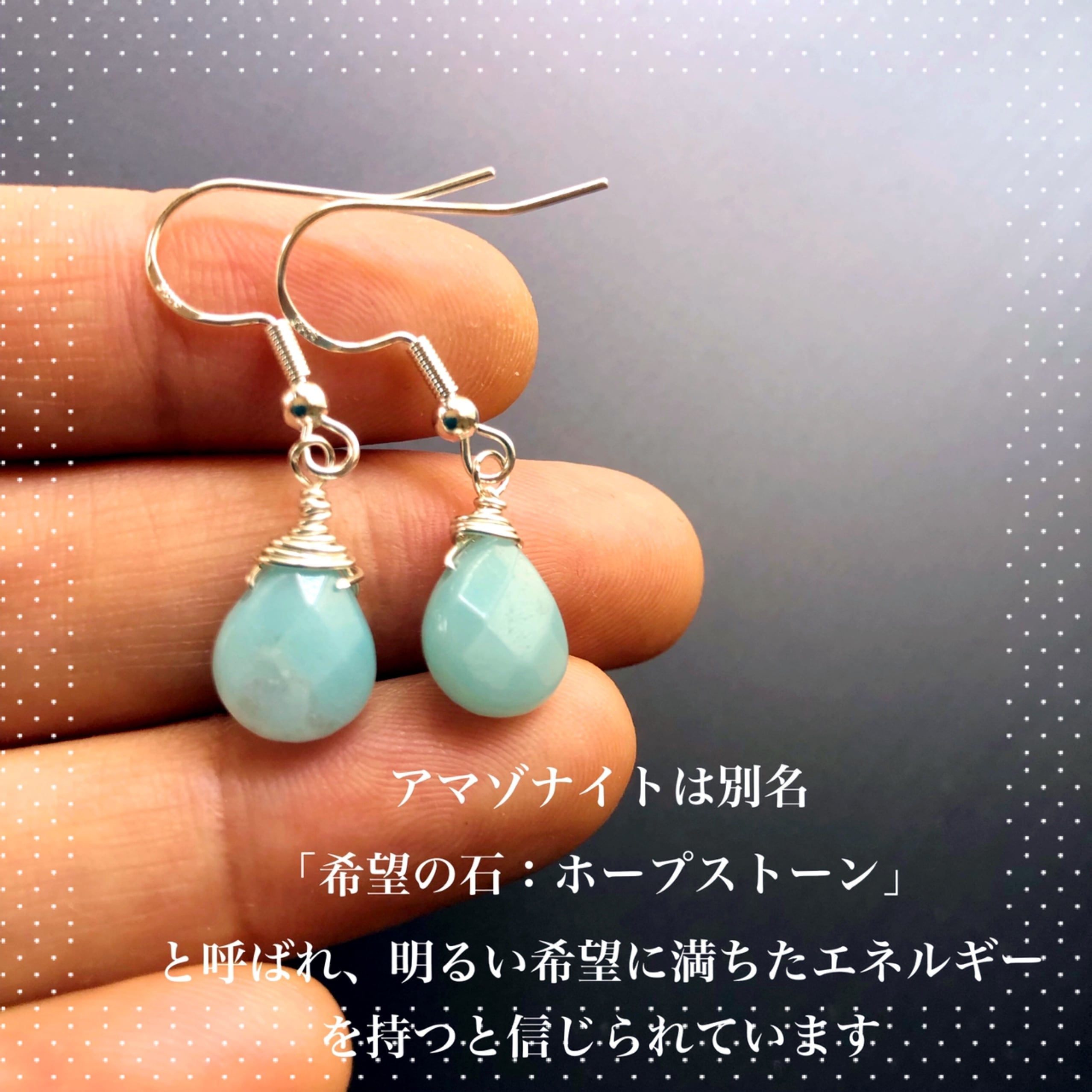 アマゾナイトのカットの入ったペアシェイプカットのピアスです