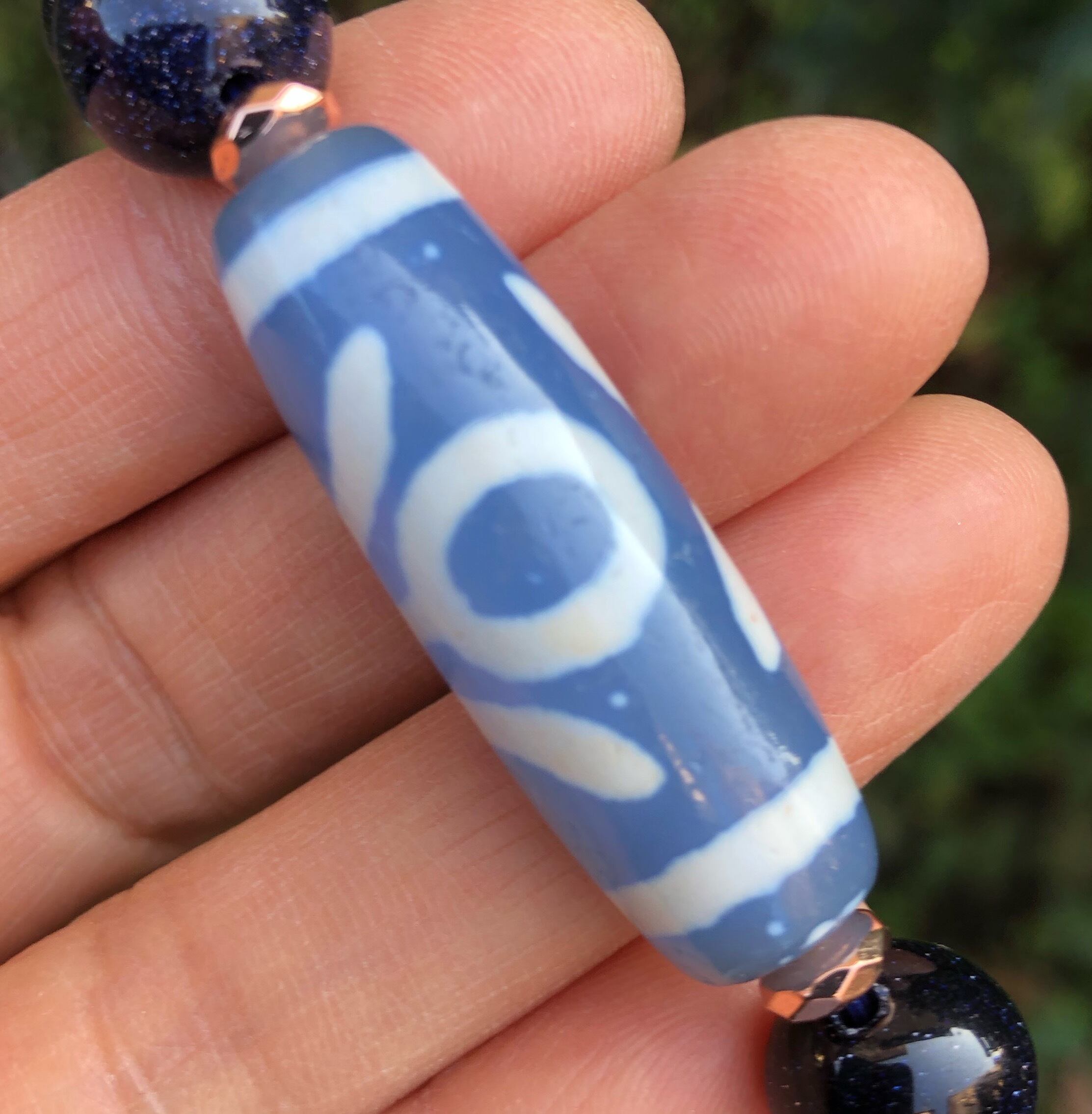 大玉のブルーゴールドストーン12mmと、人気のブルー天珠(貴人天珠)の組み合わせです