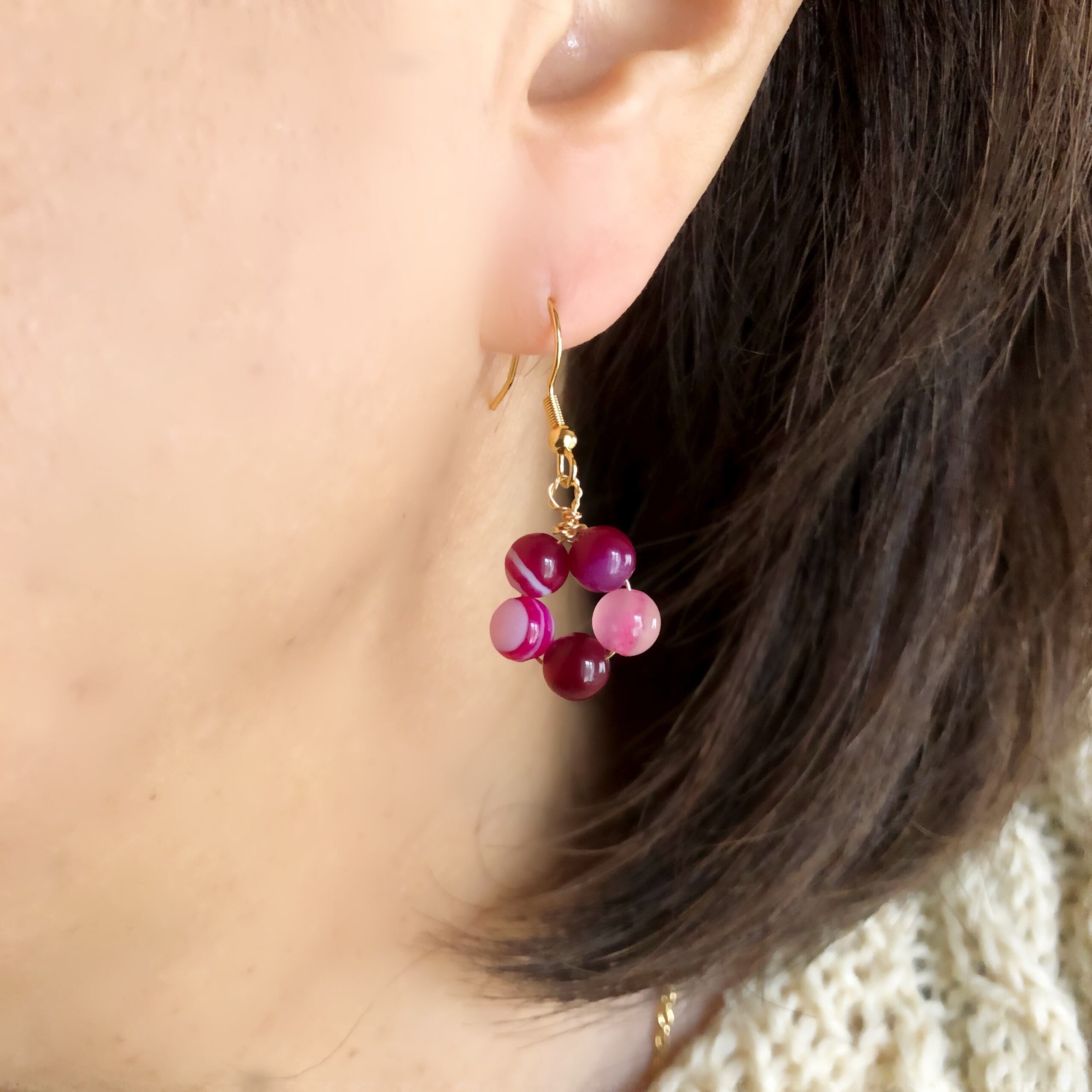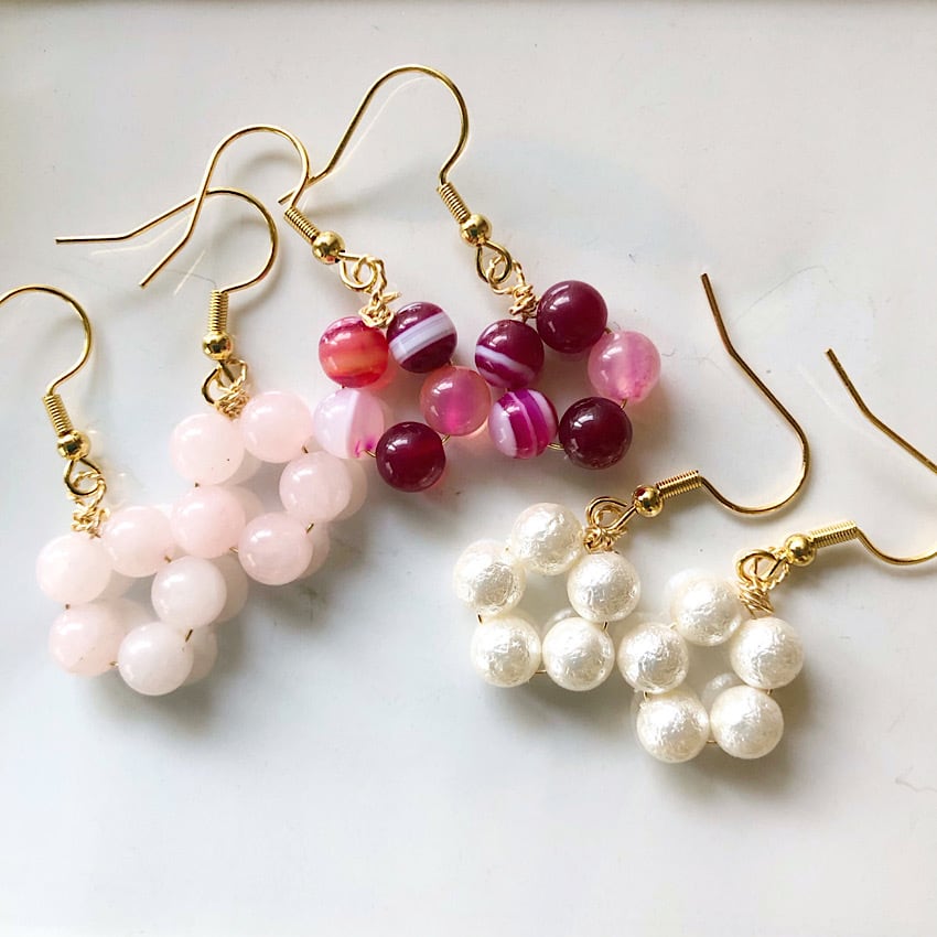 6mmの天然石をワイヤーで集め、可愛らしい梅の花に仕上げだピアスです
