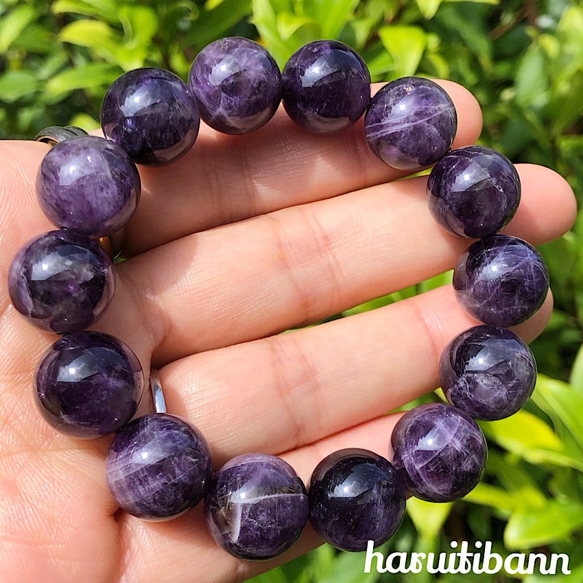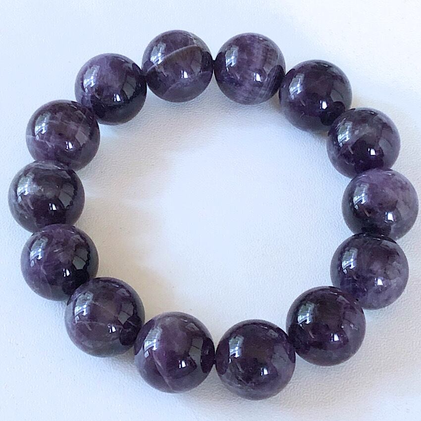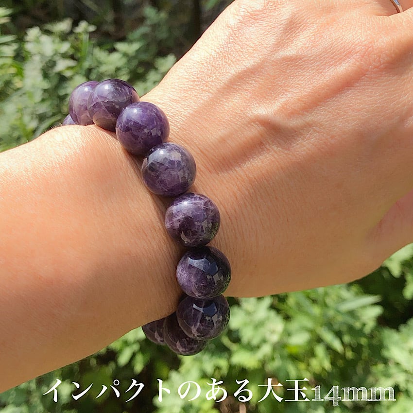 ケープアメジスト14mm 天然石ブレスレット パワーストーンブレスレットは、美しい紫色と織り交じる白が特徴のパワーストーンブレスレットです。