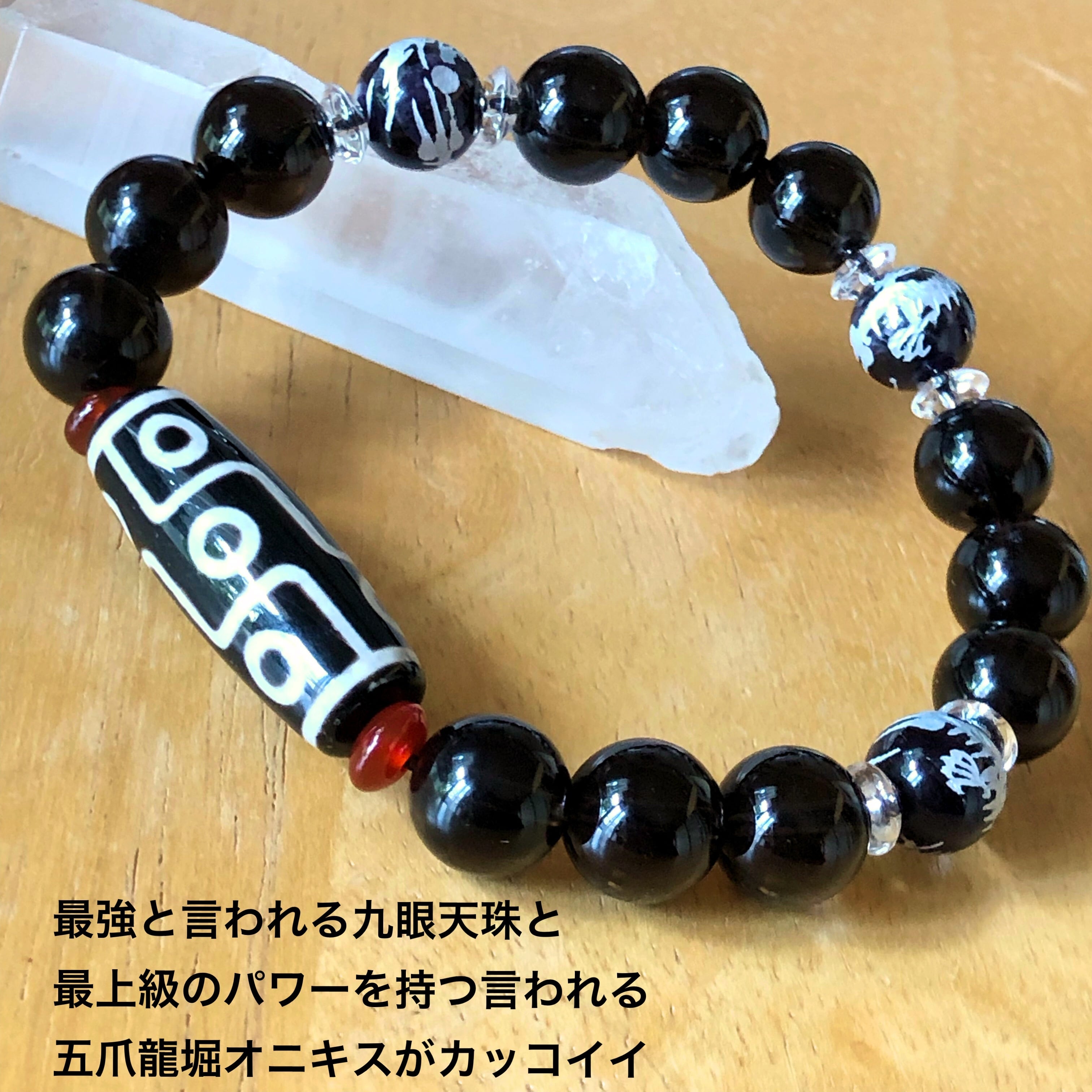 最強パワー九眼天珠×人気五爪龍堀オニキス スモーキークォーツ天然石ブレスレット パワーストーンブレスレットは、力強く魅力的な天然石ブレスレットです。