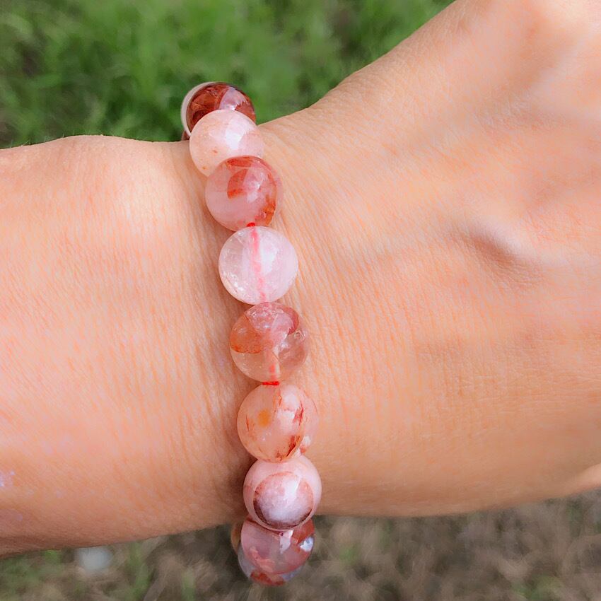 石の美しい輝きを放つ、レッドヘマタイトインクォーツの天然石ブレスレット。