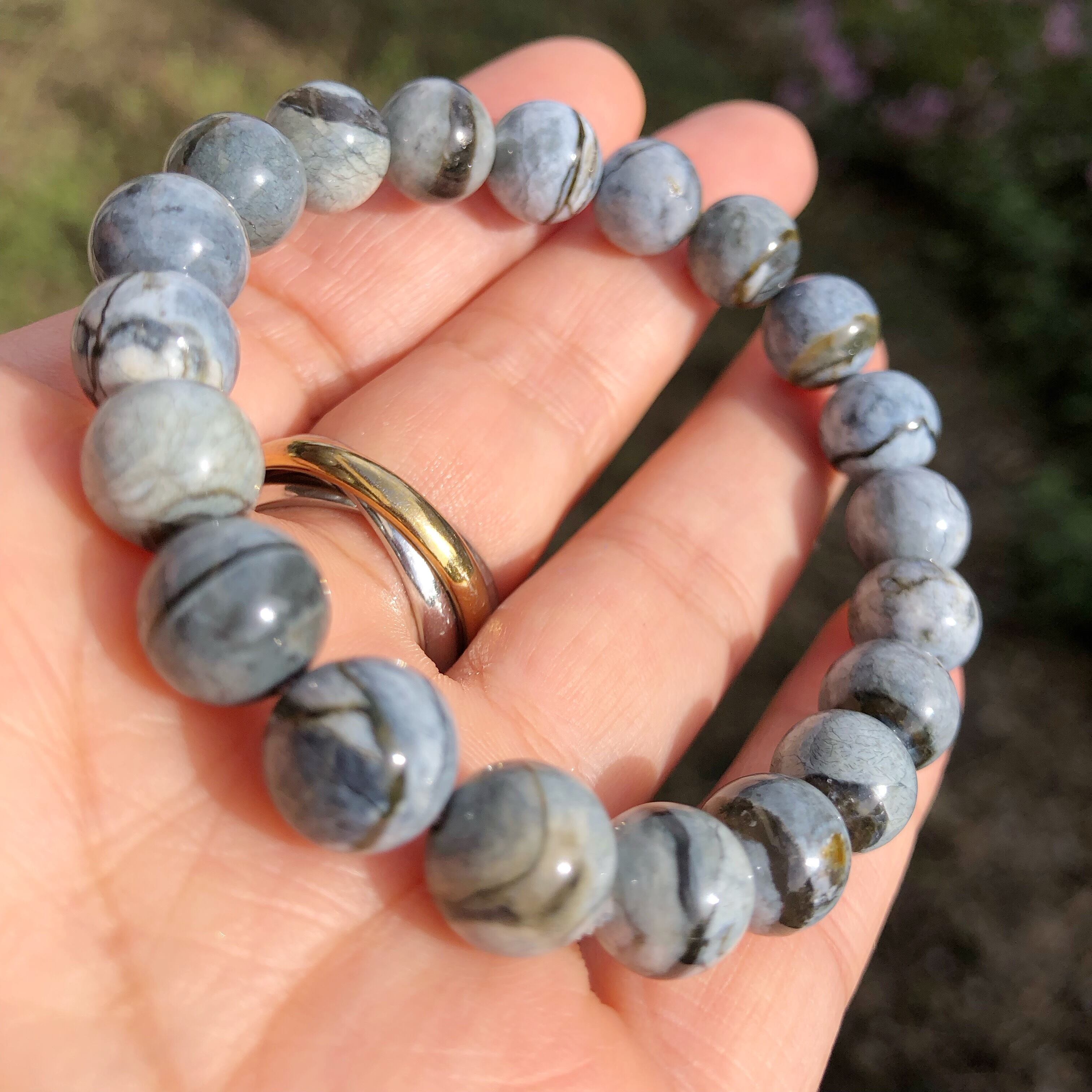 ブルーオパール9.5mm 天然石ブレスレット パワーストーンブレスレットは、美しい青色とパワフルなエネルギーを持つ天然石ブレスレットです。