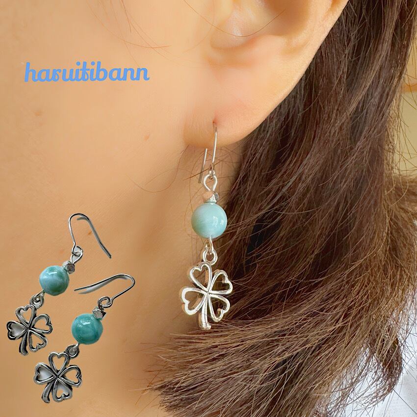 このピアスは、四葉のクローバーが持つ幸運の象徴とともに、ラリマーのパワーを身に纏い、毎日を幸せな気持ちで過ごしていただけます。