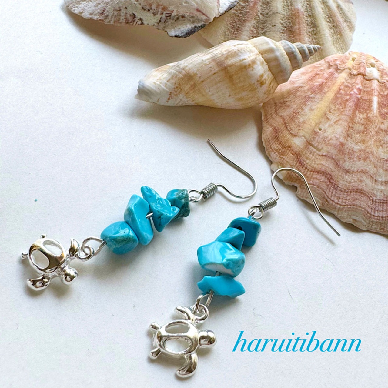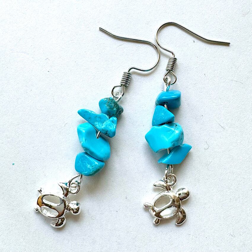 天然石の美しい輝きが魅力のターコイズ&ホヌのピアス。
