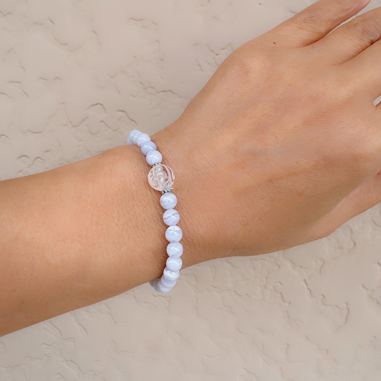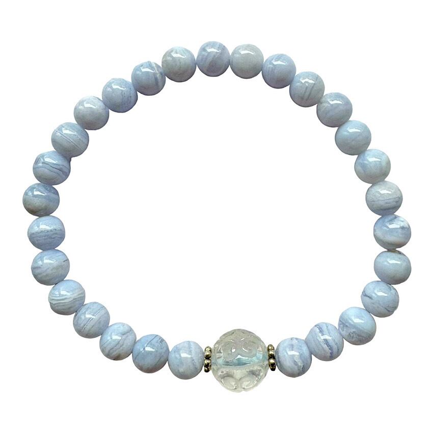 ブルーレースアゲード6mm&水晶回珠10mm 天然石ブレスレット パワーストーンブレスレットは、気品あふれるデザインとパワフルなエネルギーを兼ね備えた逸品です。