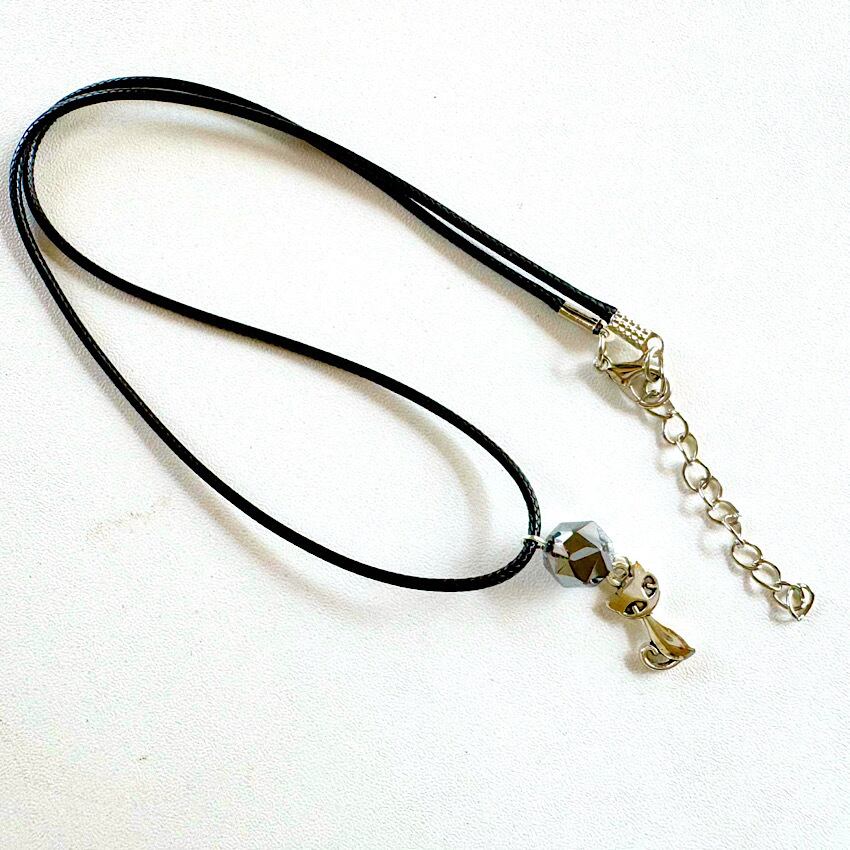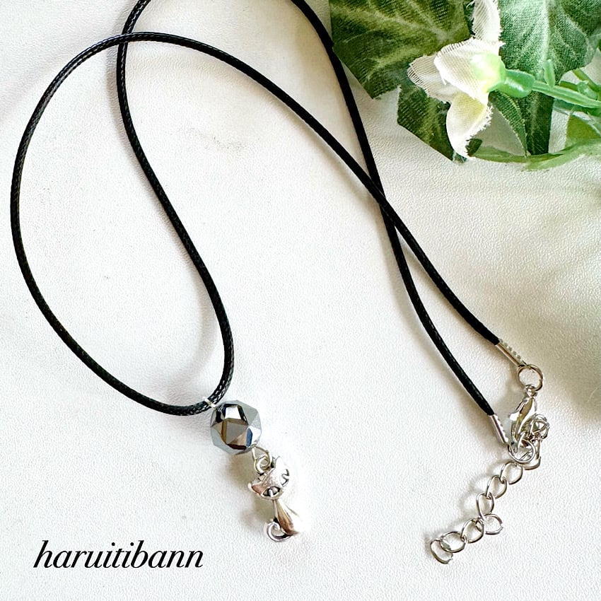 テラヘルツ10mm 64面カット&猫ちゃんワックスコードネックレス。