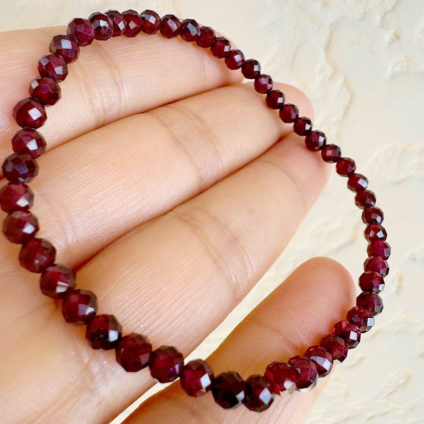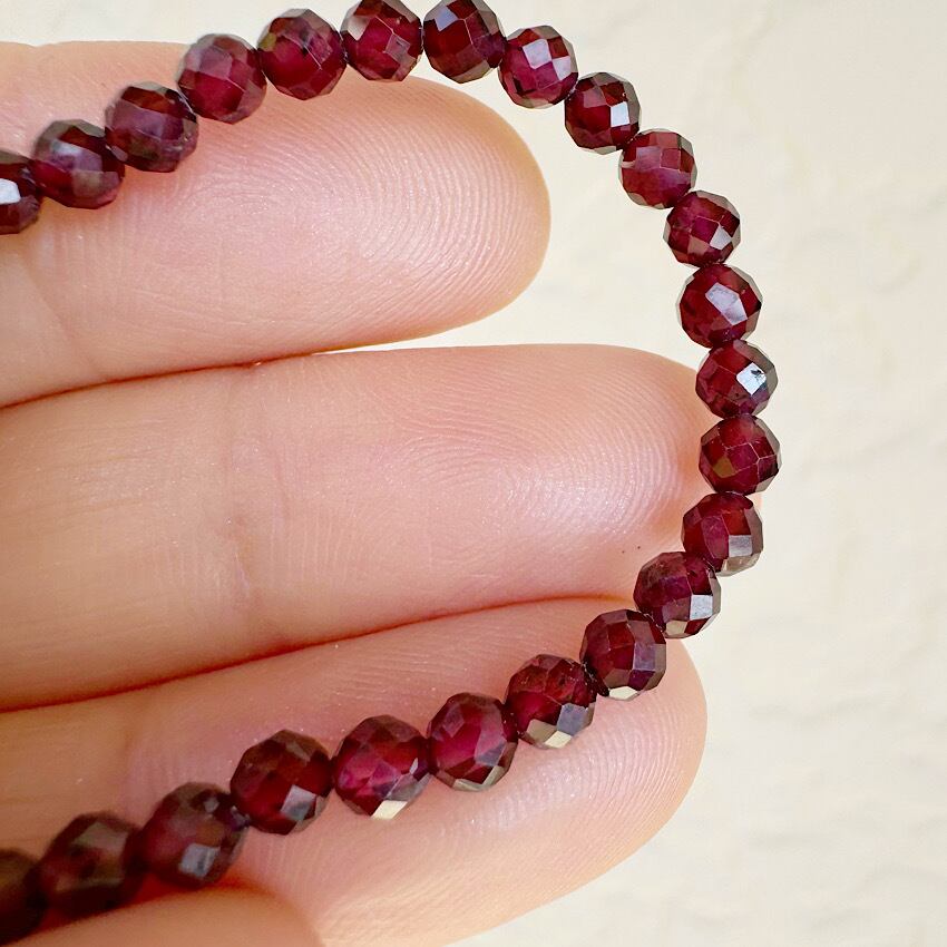 オシャレで個性的な存在感を放つ、ガーネット4mm キラキラカット 天然石ブレスレット
