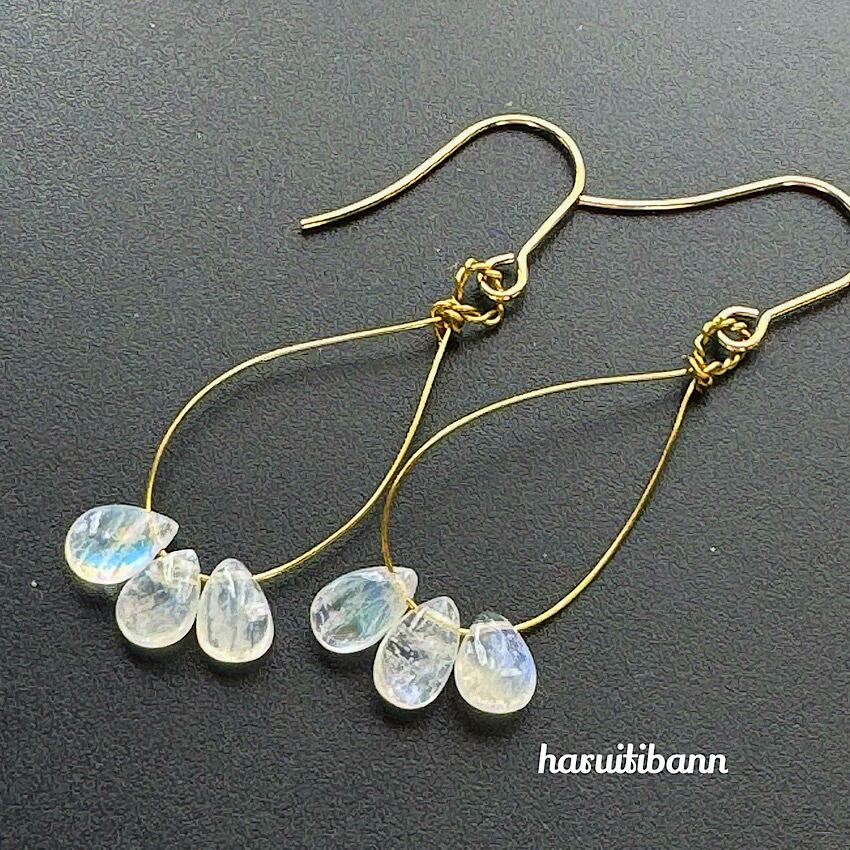 ## ブルームーンストーン6粒を贅沢に使った 大ぶりピアス 天然石ピアス 6月の誕生石 サージカルステンレス 金属アレルギー対応