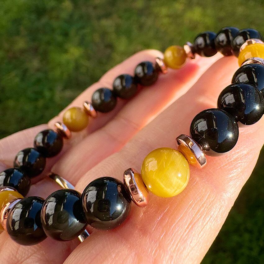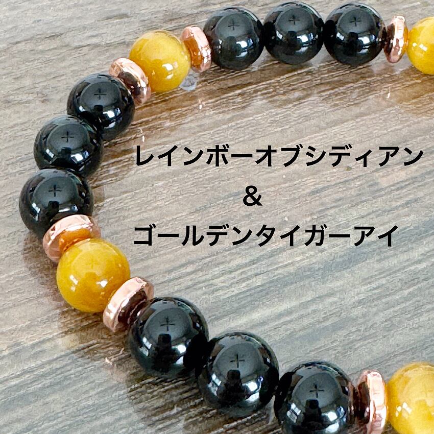 レインボーオブシディアンとゴールデンタイガーアイが持つエネルギーが、あなたの魅力を引き立て、周囲に良い影響を与えることでしょう。