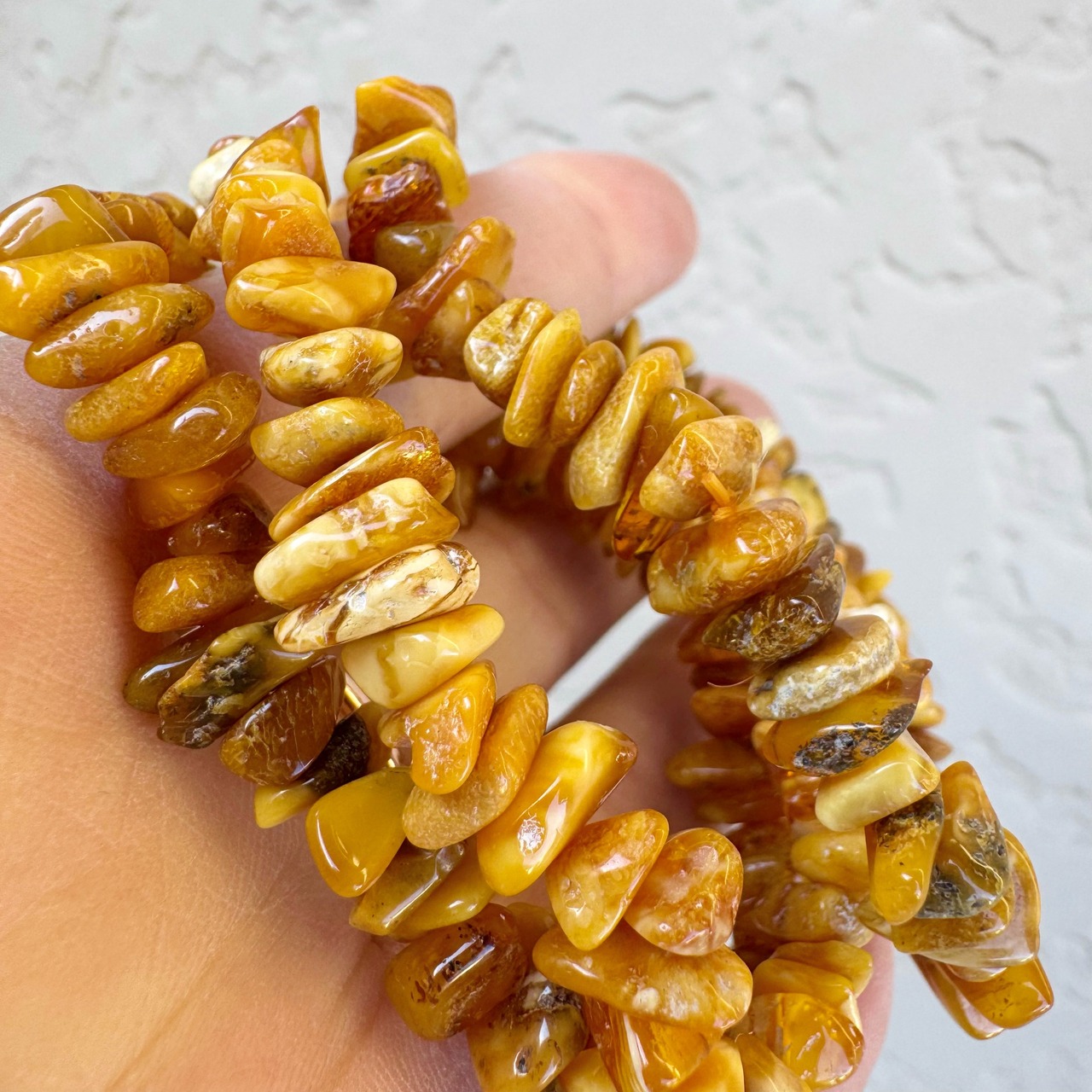 ## 天然琥珀さざれブレスレット アンバーさざれブレスレット パワーストーンブレスレット